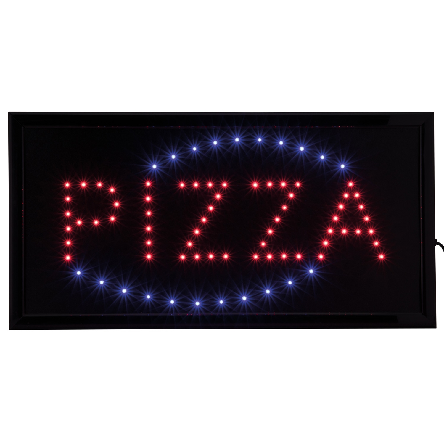 Ekstra kraftig og lyser blå og rød LED skilt med teksten "PIZZA" med blå lys rundt om, som blinker i en fin sirkel bevegelse.
