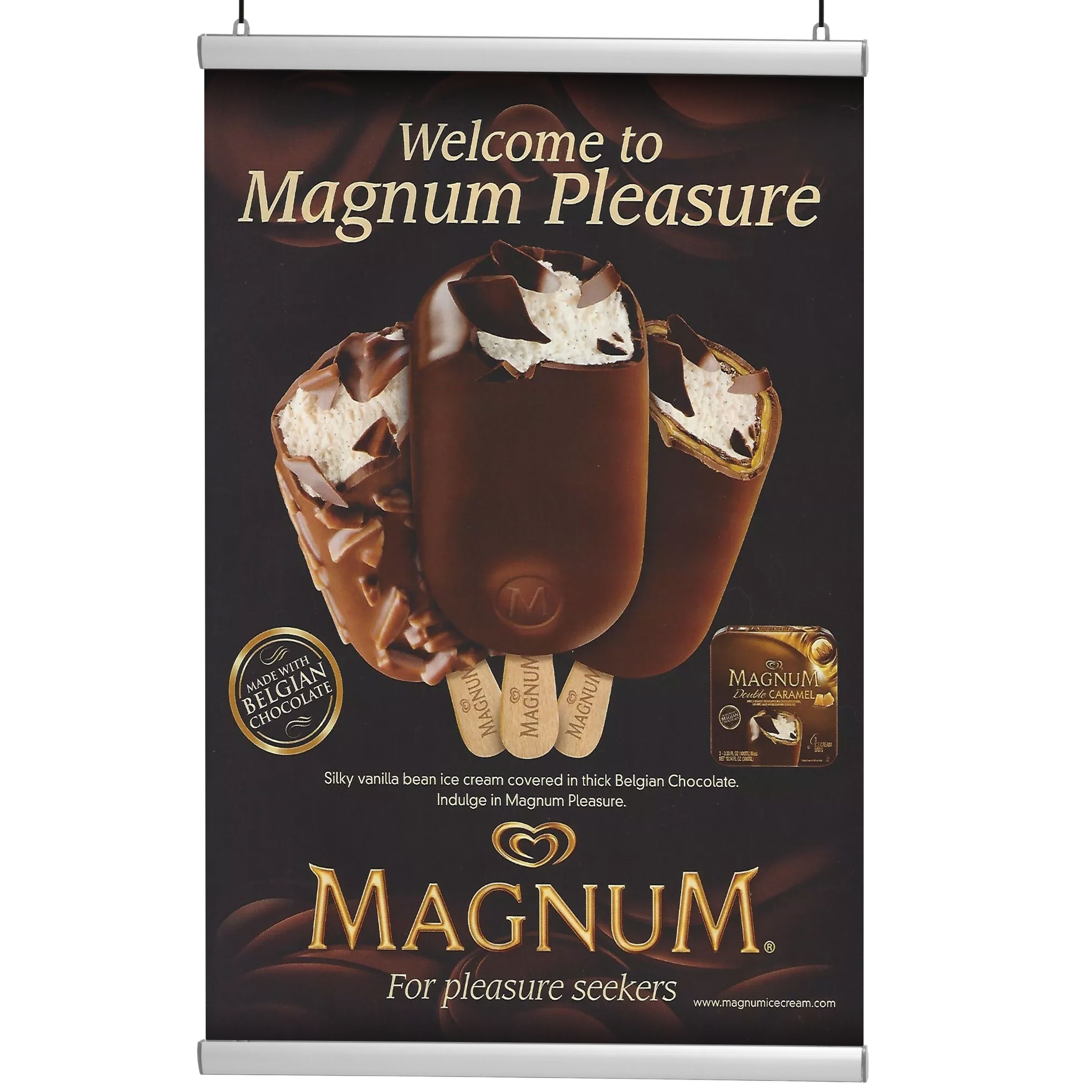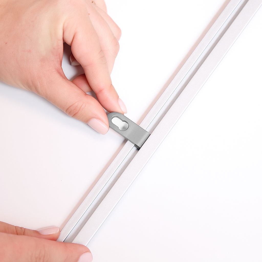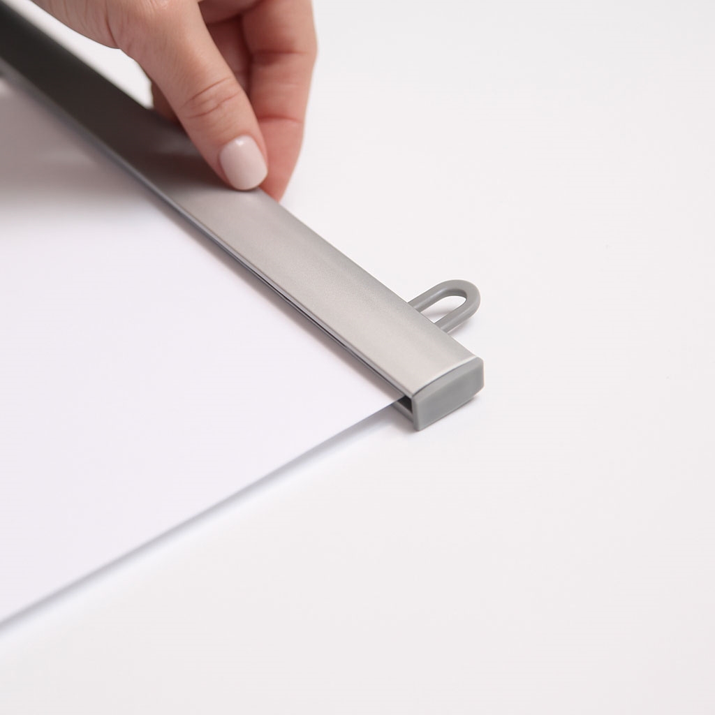 Disse plakatlistene i sølv på 42 cm er en elegant og praktisk løsning for oppheng av plakater og skilt i A2-format.