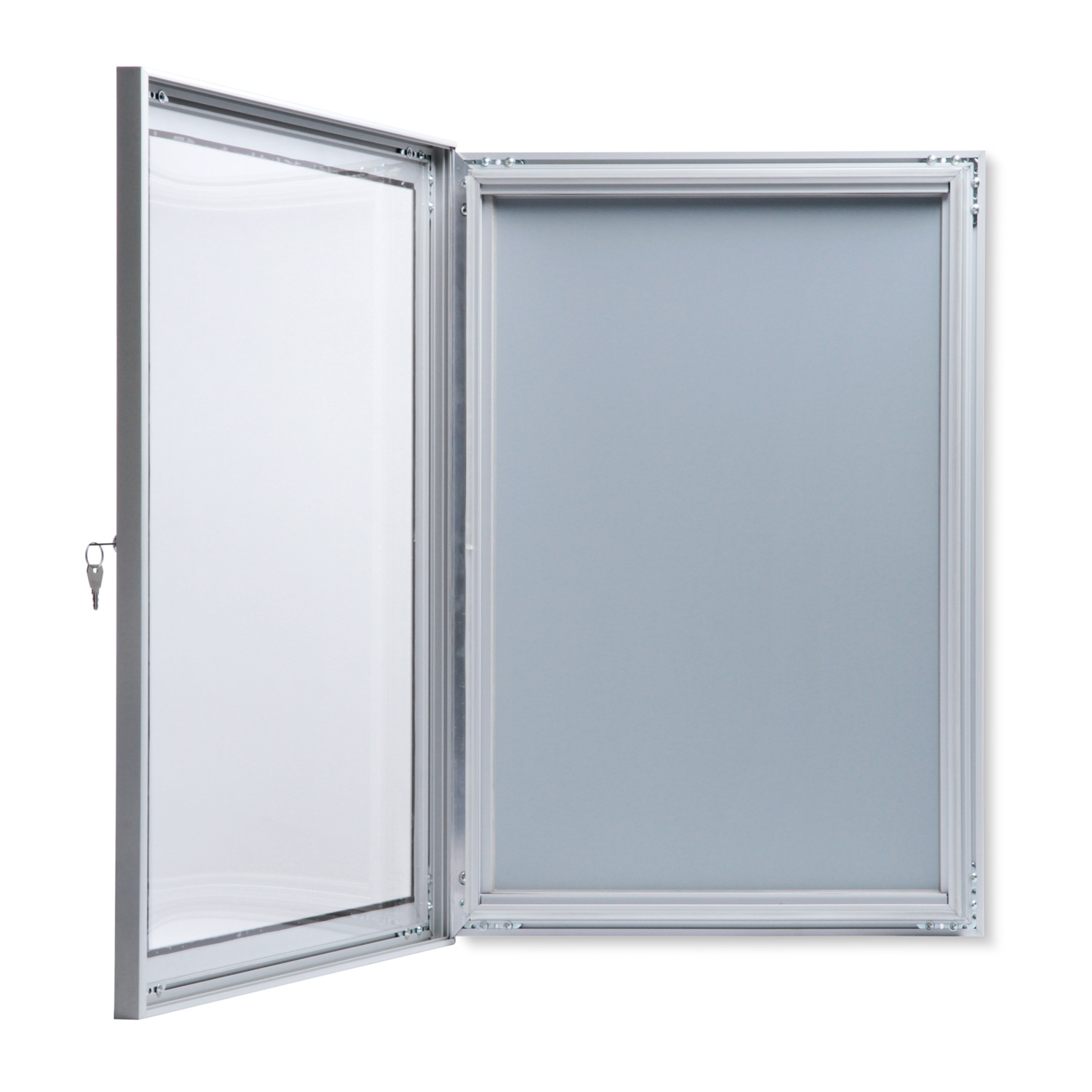 Vårt plakatskap har en flott 45 mm profil og frontruten er laget av slagfast polykarbonat.