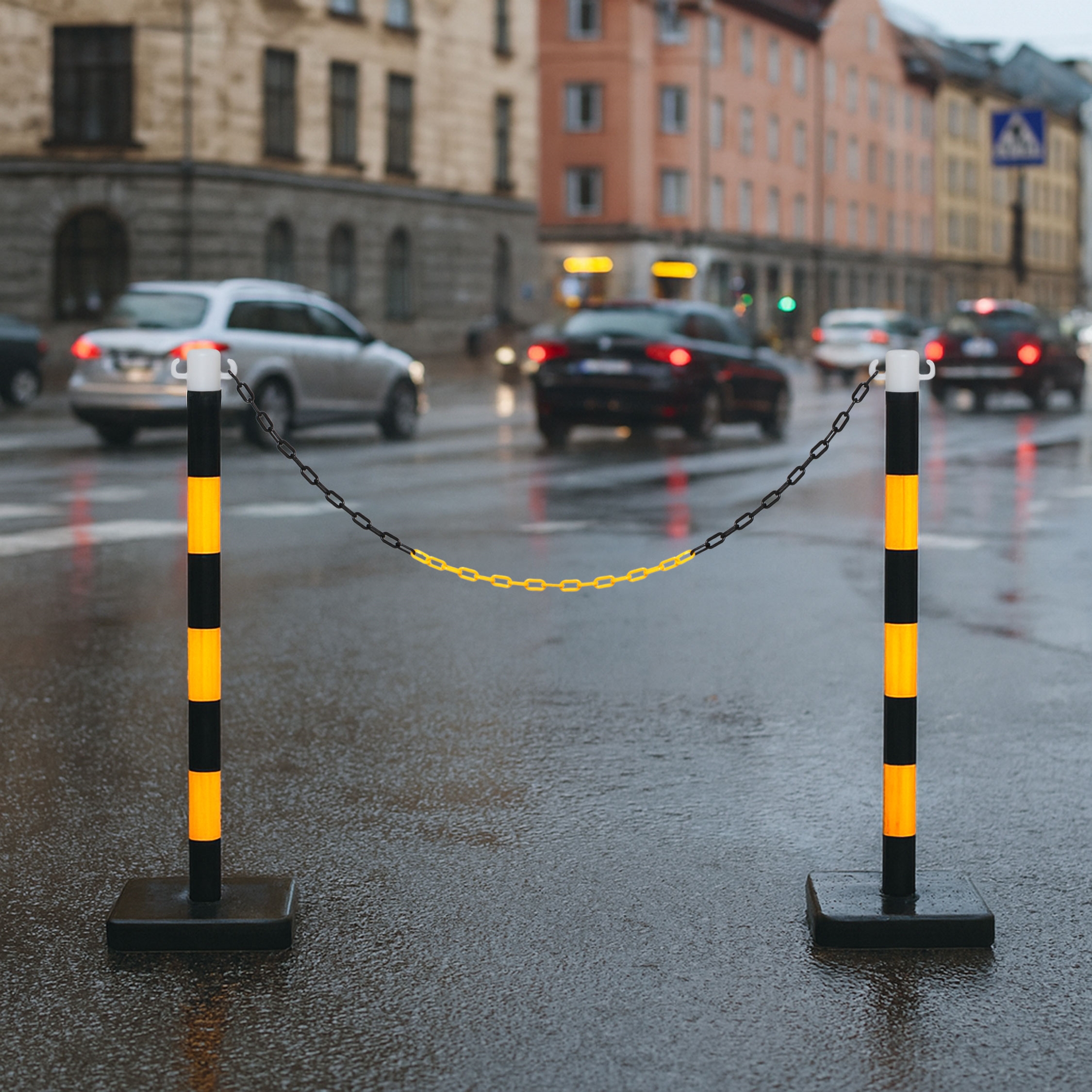 Denne stolpen gir en tydelig og synlig avsperring som raskt kan tilpasses ulike behov. Den svarte og gule fargekombinasjonen gir høy oppmerksomhet, og den fyllbare foten sørger for sikker stabilitet. En praktisk og holdbar løsning for utendørs bruk der fleksibilitet og trygghet er viktig.