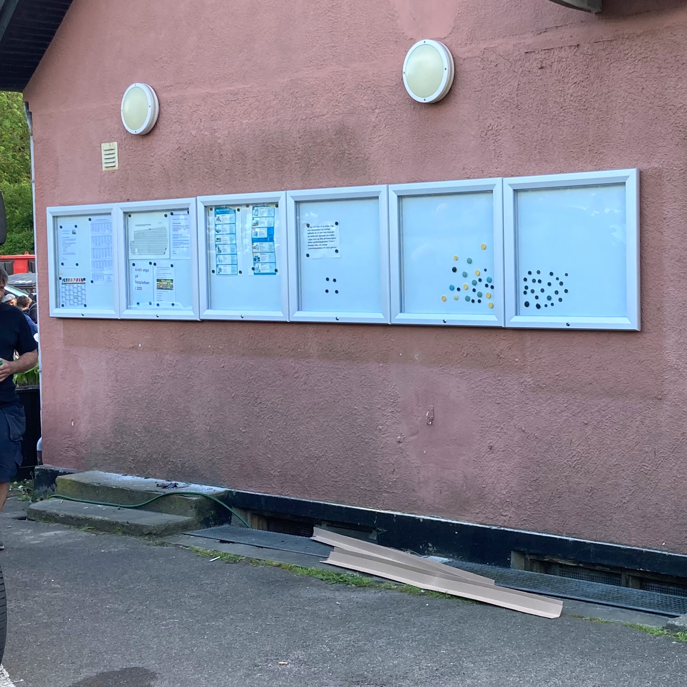 Våres premium oppslagsskap er topphengslet og montert med en stang som holder døren åpen, samtidig som du skifter plakatene / oppslagene.