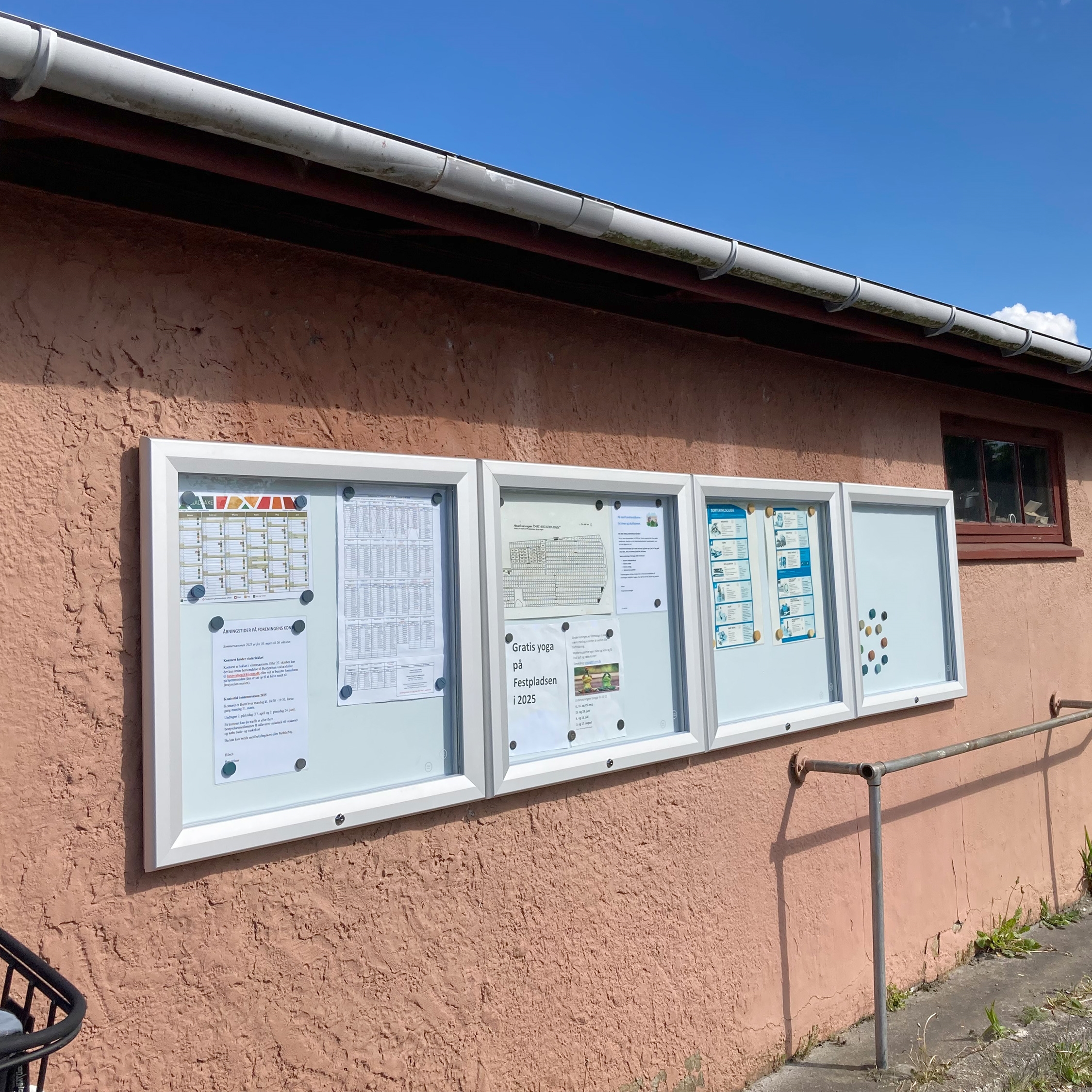 Værbestandig og låsbar IP56-sertifisert oppslagsskap utført med en kraftig sølvanodisert ramme med lakkerte stålbakplater (whiteboard).