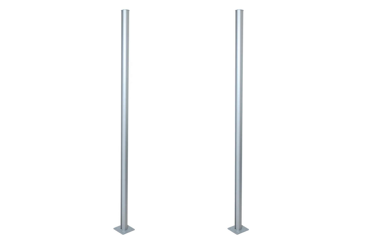 De 2 meter høye stolper leveres som standard med metallføtter til fastgjørelse på betong.