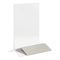 Dobbelsidig glassklar akryl skiltholder med flott fot i rustfritt stål.