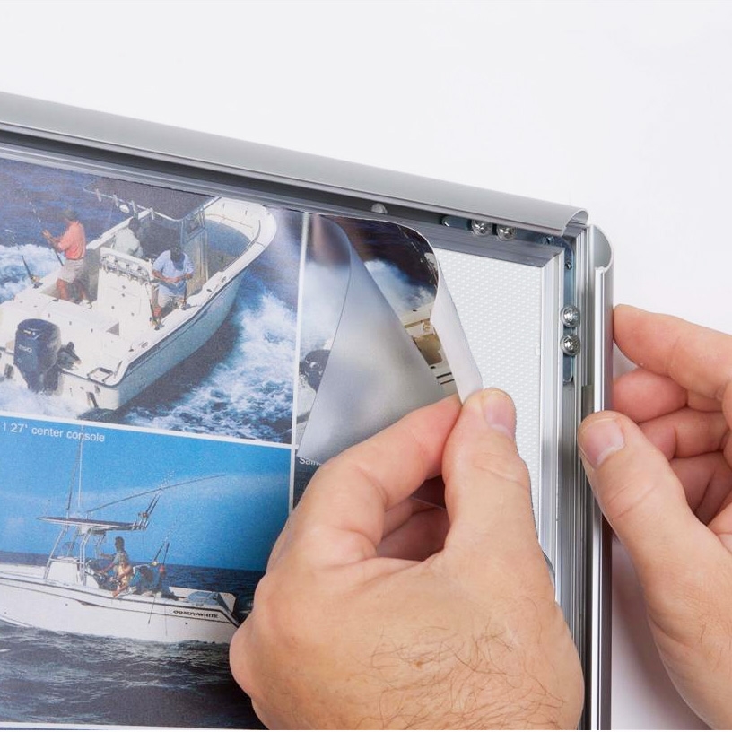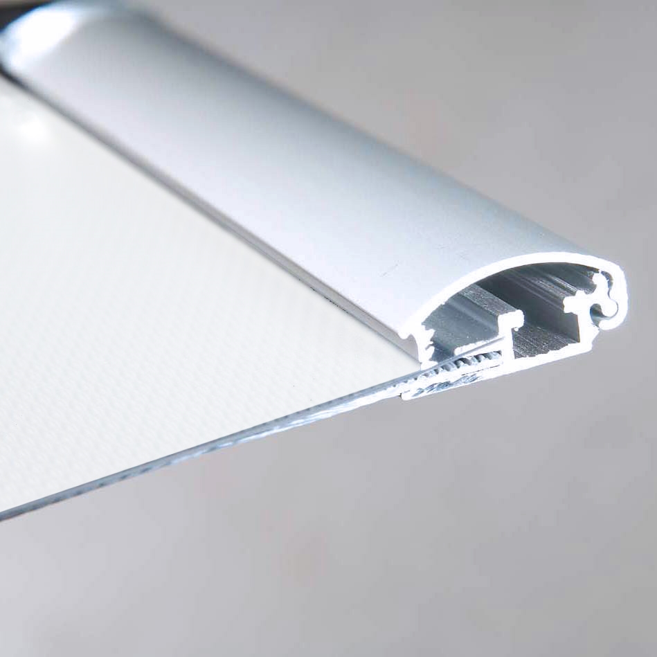 Frontprofilen er laget av sølvanodisert aluminium og er 25 mm i bredden. Profilen er avrundet og avsluttes med et lite håndtak, noe som gjør at rammene er svært enkle å åpne og derfor er det også veldig enkelt og raskt å bytte boksen innvendig.