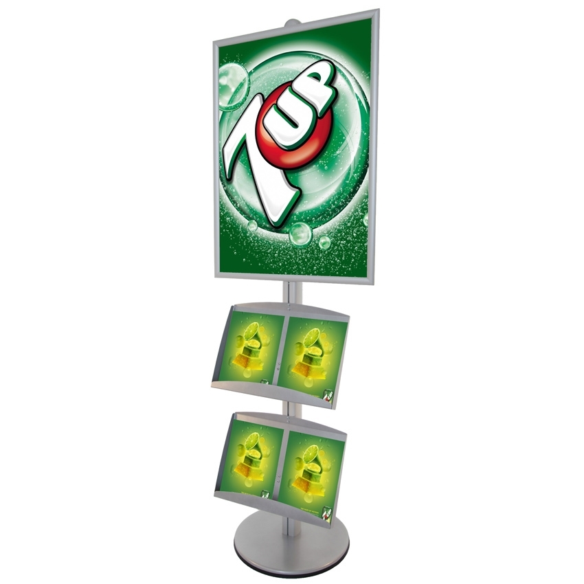 Denne ProStand leveres med en klikkramme og en 2 stål brosjyreholder til i alt 4 x A4 eller 2 x A3.