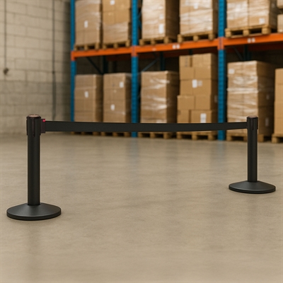 QueueMax Mini Svart Avsperringsstolpe med bånd
