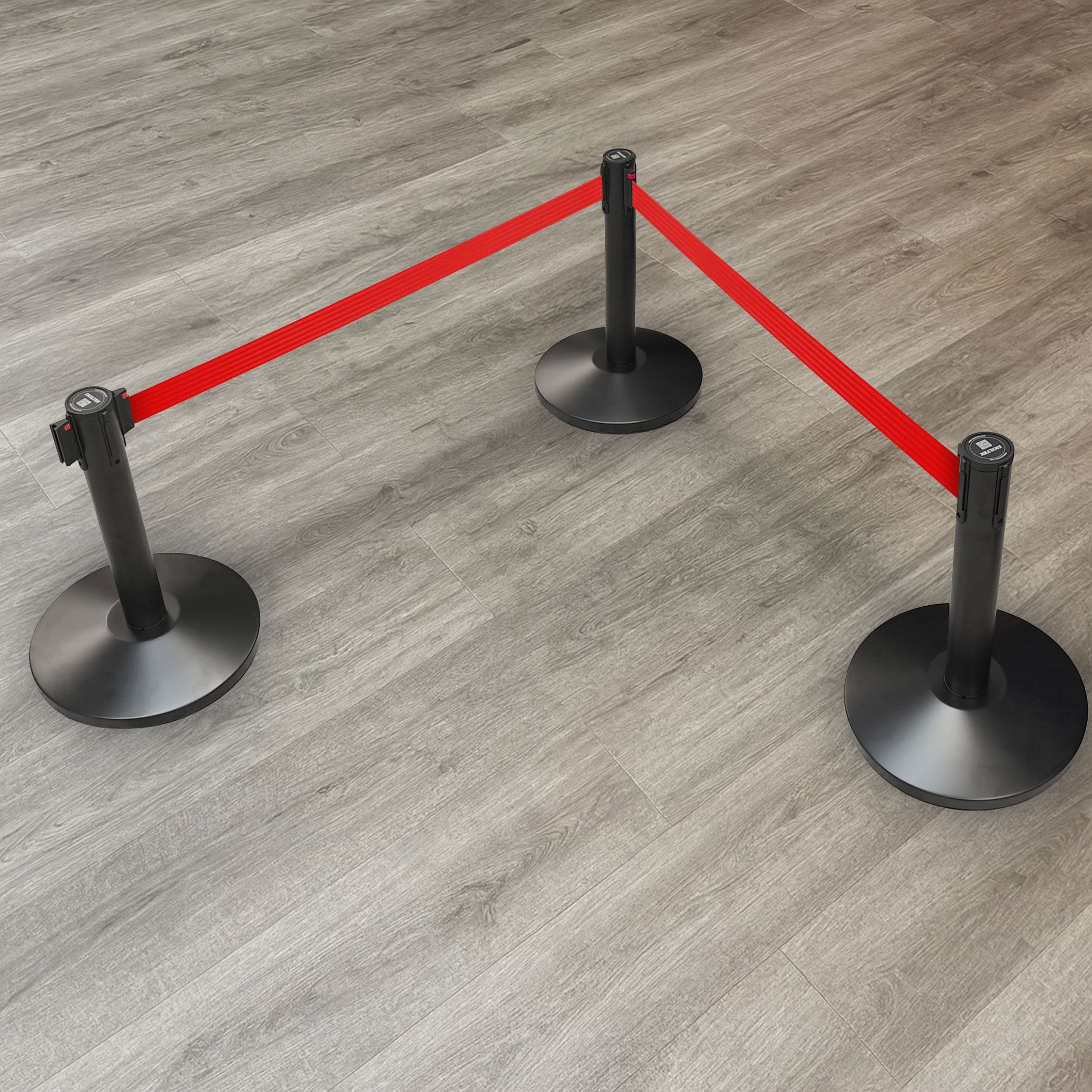 QueueMax Mini er en svart avsperringsstolpe på 51 cm, produsert i galvanisert stål med en tung betongfylt fot med gulvbeskyttelse. Den kompakte høyden gjør den til en elegant og diskret køleder, perfekt til museer, utstillinger, showrooms og andre steder hvor en tydelig men lavmælt avsperring er ønsket.