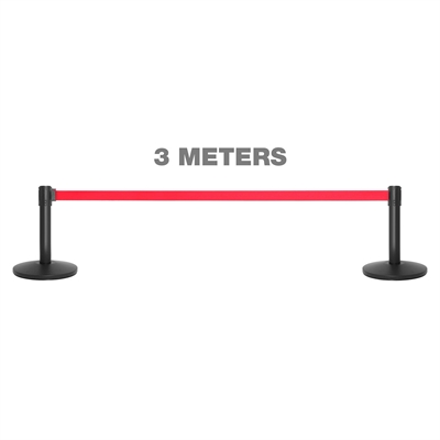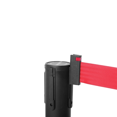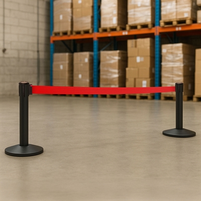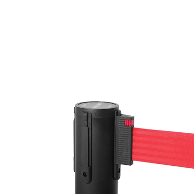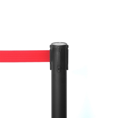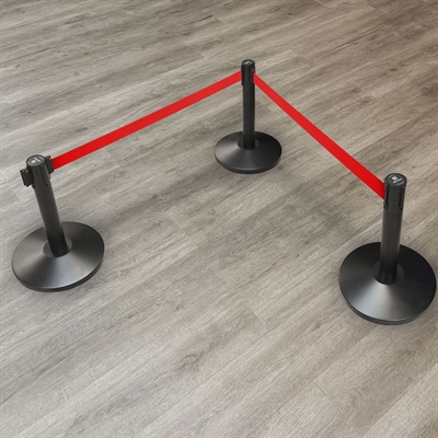 QueueMax Mini Svart Avsperringsstolpe med rødt bånd