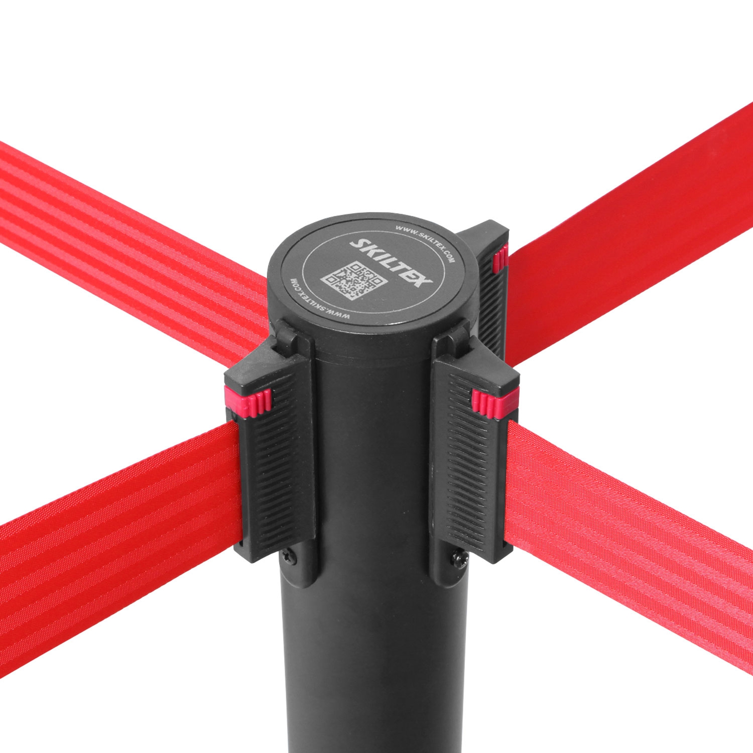 De 3 meter lange, uttrekkbare røde båndene er lengre enn industristandarden på 2,3 m. Det betyr at du kan klare deg med ca. 30% færre stolper enn normalt.