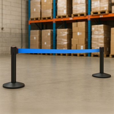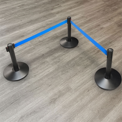 QueueMax Mini Svart Avsperringsstolpe med blått bånd