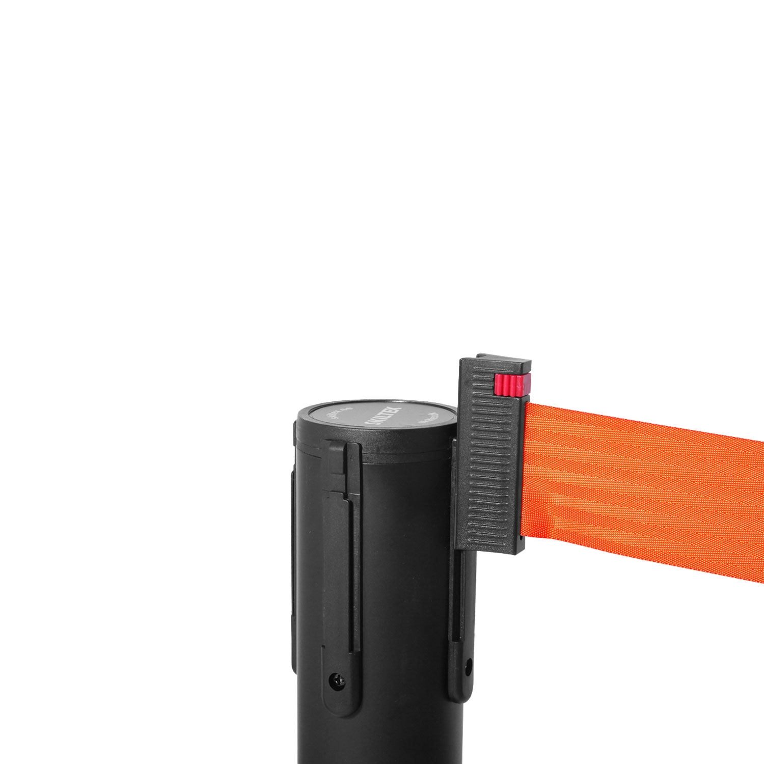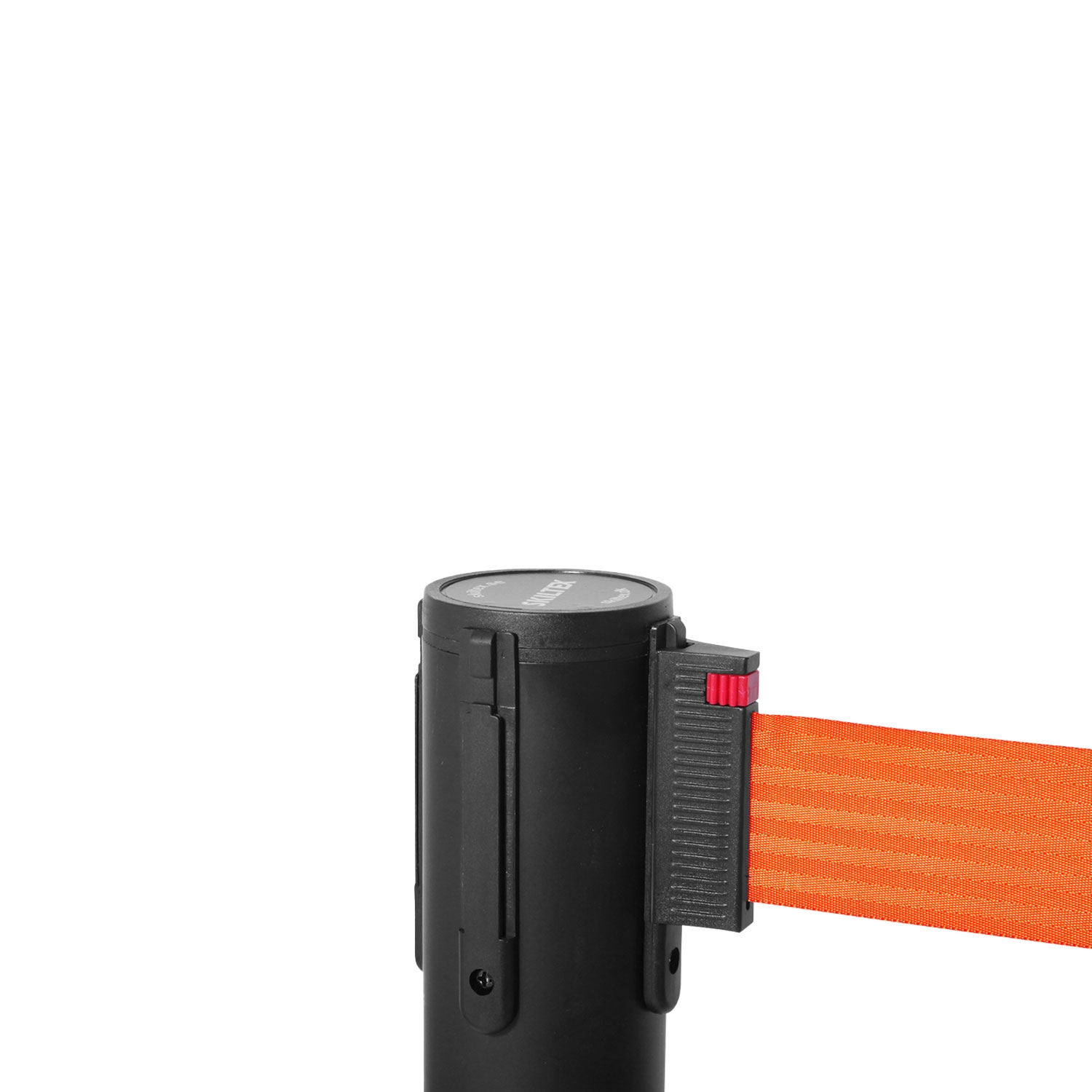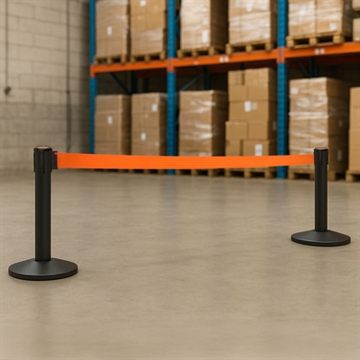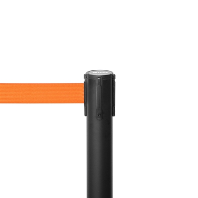 QueueMax Mini Svart Avsperringsstolpe med oransje bånd