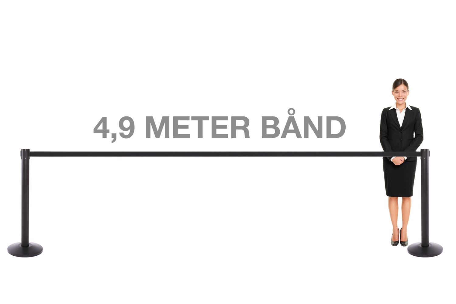 De ekstremt lange 5 meter trekkbare bånd er over dobbelt så lange som industristandarden, som kun er 2,3 meter. Dette betyr at du med våres stolper holder det med kun at kjøpe 50% stolper ift normalt.