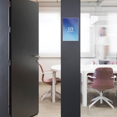 Gi kontoret ditt et profesjonelt utseende med vårt Reap dørskilt / vægskilt A4, som kombinerer enkelhet med funksjonalitet. Skiltet er ideelt for å bytte innhold raskt, noe som gjør det enkelt å tilpasse og oppdatere etter behov.