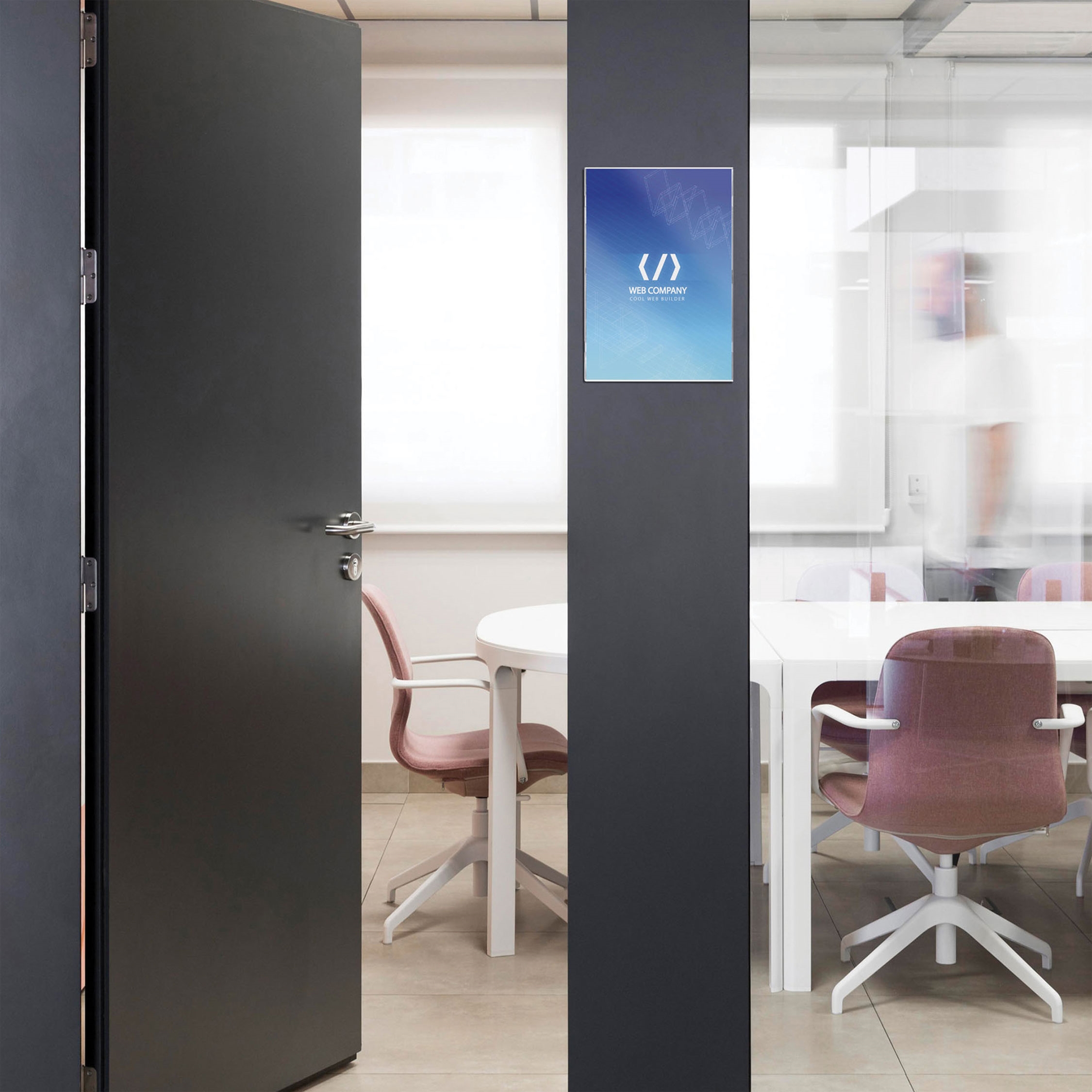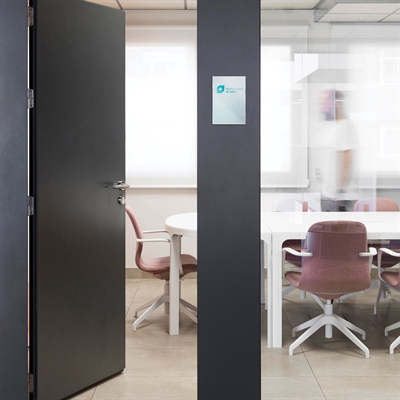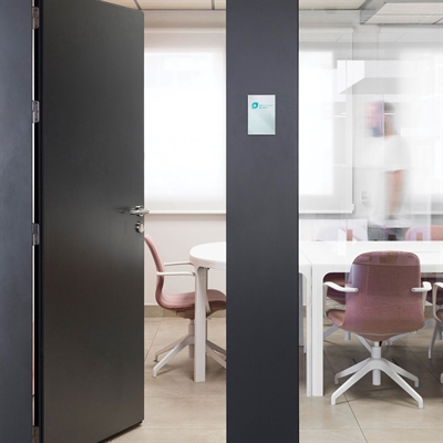 Gi kontoret ditt et profesjonelt uttrykk med våre Reap dørskilt / veggskilt, som kombinerer enkelhet med funksjonalitet. Skiltene er ideelle for raskt å bytte innhold, noe som gjør dem enkle å tilpasse og oppdatere etter behov.