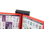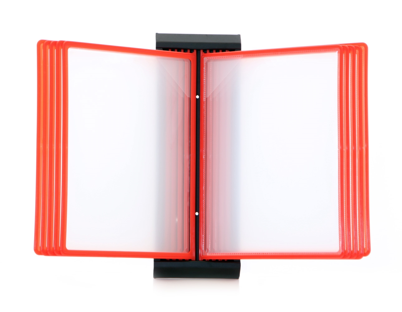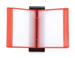 Svartlakkert stål registersystem til montering på veggen, som leveres med 10stk. dobbelsidige A4 lommer i rød.