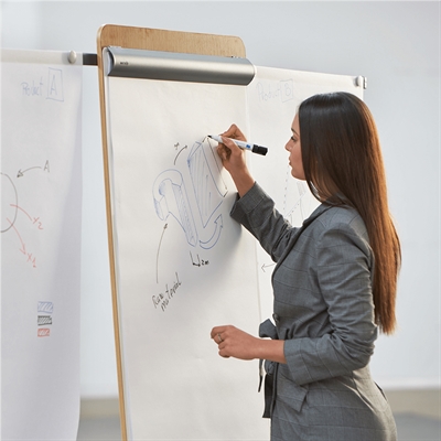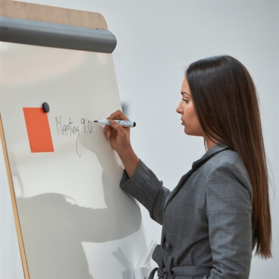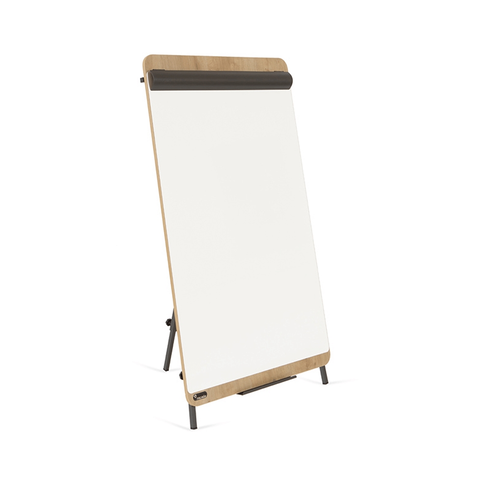 • Rocada Flipchart med magnetisk whiteboard tavle i lakkert stål, med detaljer i melamin med flott trestruktur.