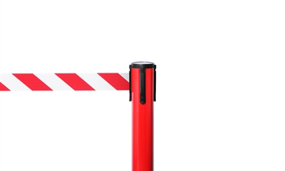 Røde SafetyMaster avsperringsstolper er produsert i galvanisert stål med en tung og stabil betongfyllt fot med gulv beskyttelse.