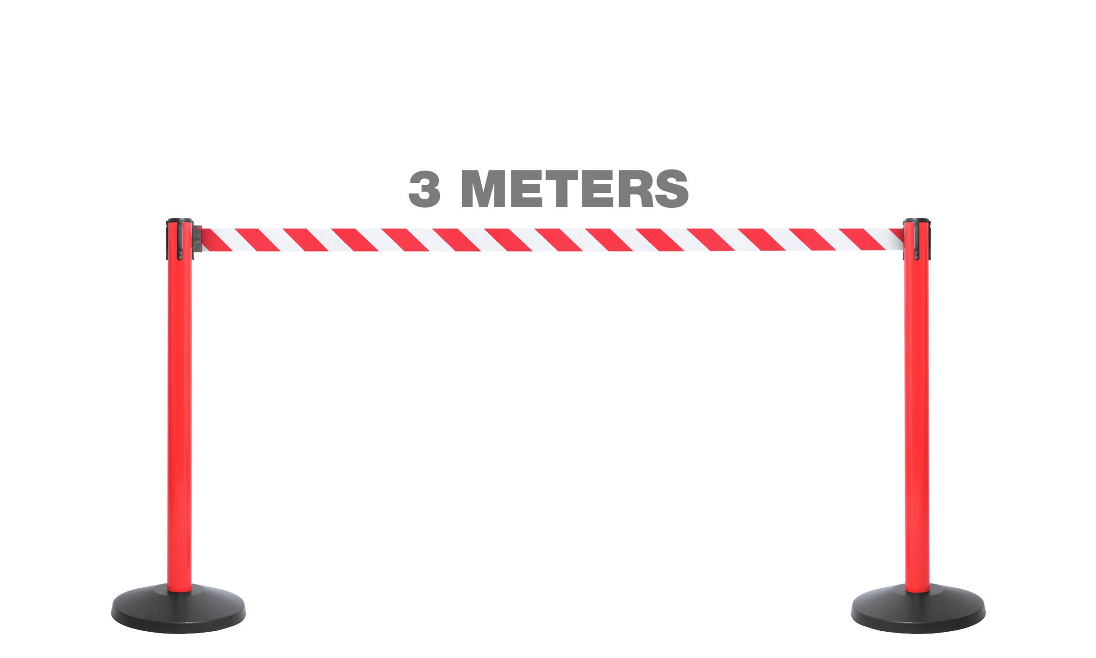 De ekstrem lange 3 meter opptrekkelige bånd er en del lengere enn industristandarden, som er 2,3 meter. Dette betyr at med våres stolper holder det med at kjøpe 35% færre stolper enn normalt.