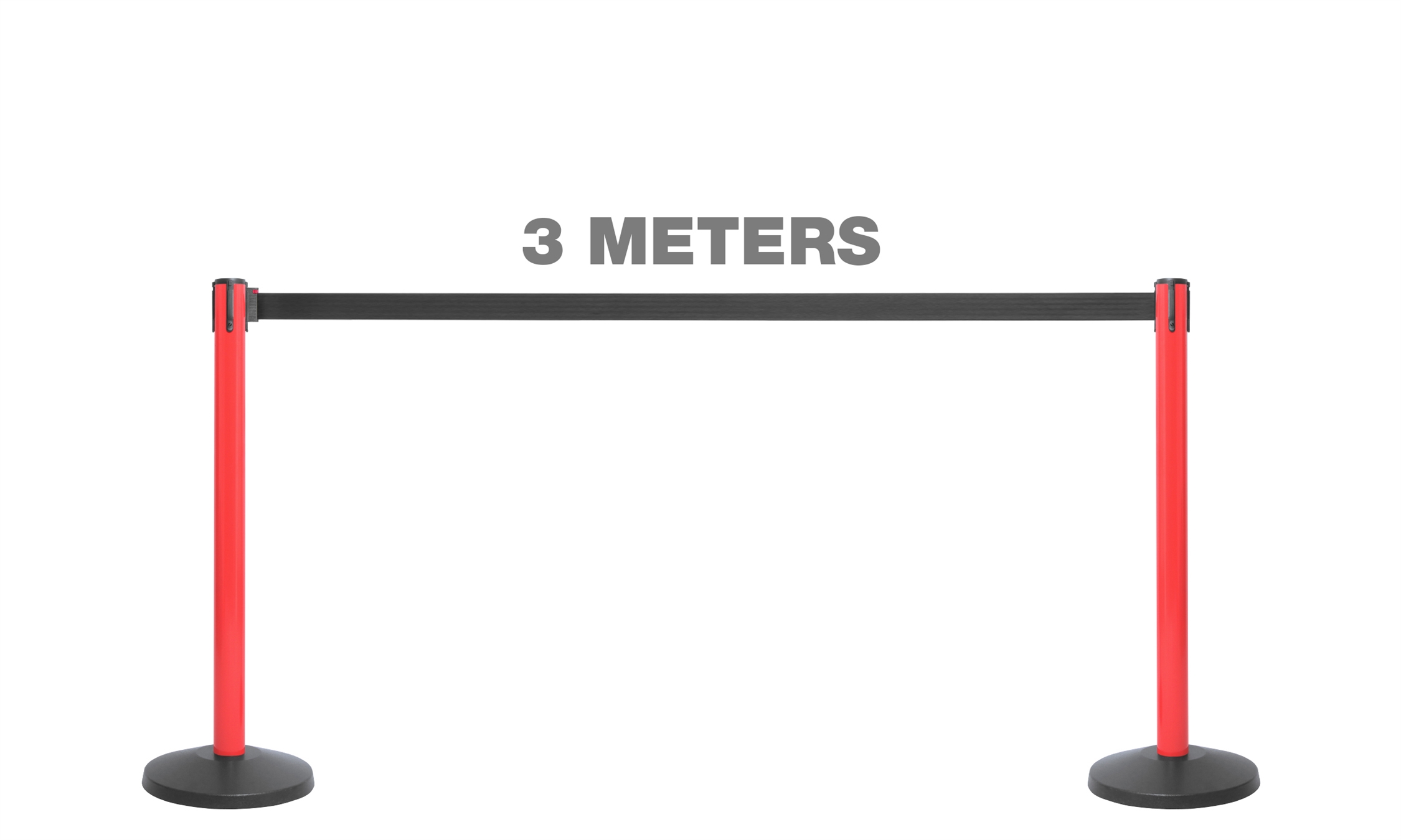 De ekstrem lange 3 meter opptrekkelige bånd er en del lengere enn industristandarden, som er 2,3 meter. Dette betyr at med våres stolper holder det med at kjøpe 35% færre stolper enn normalt.