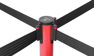 Bånden er utstyrt med en lås, som sikrer, at de sitter godt og fast på andre stolper. Skiltex avsperringsstolper har en universell bånd-lås, som passer til andre populære avsperringstolpe-brands – med garanti.