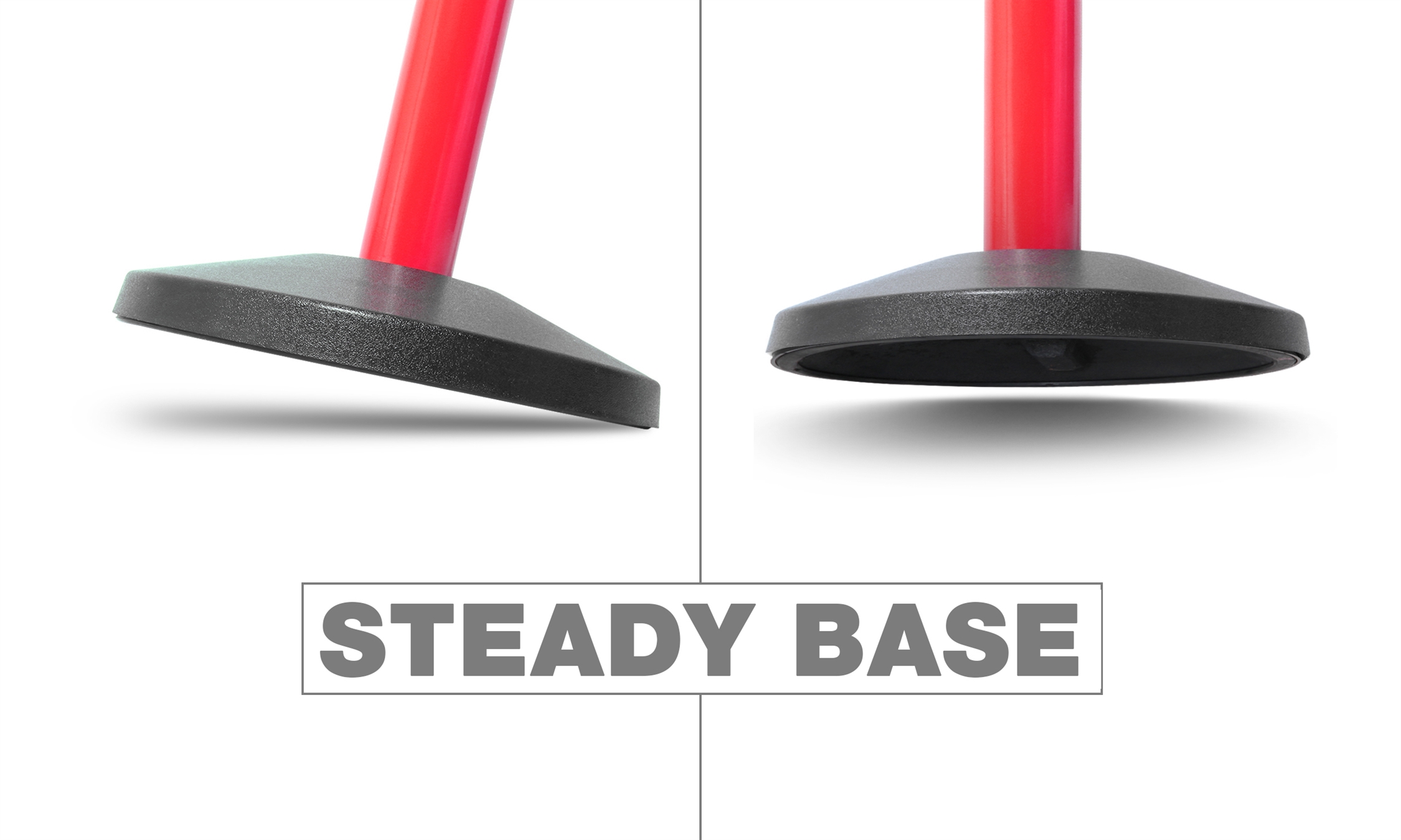 Røde SafetyMaster avsperringsstolper er produsert i galvanisert stål med en tung og stabil betongfyllt fot med gulv beskyttelse.