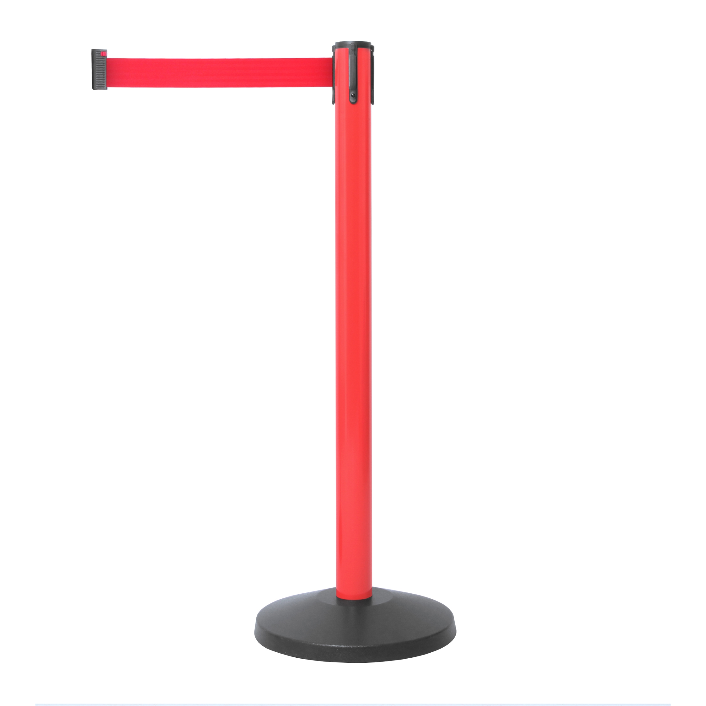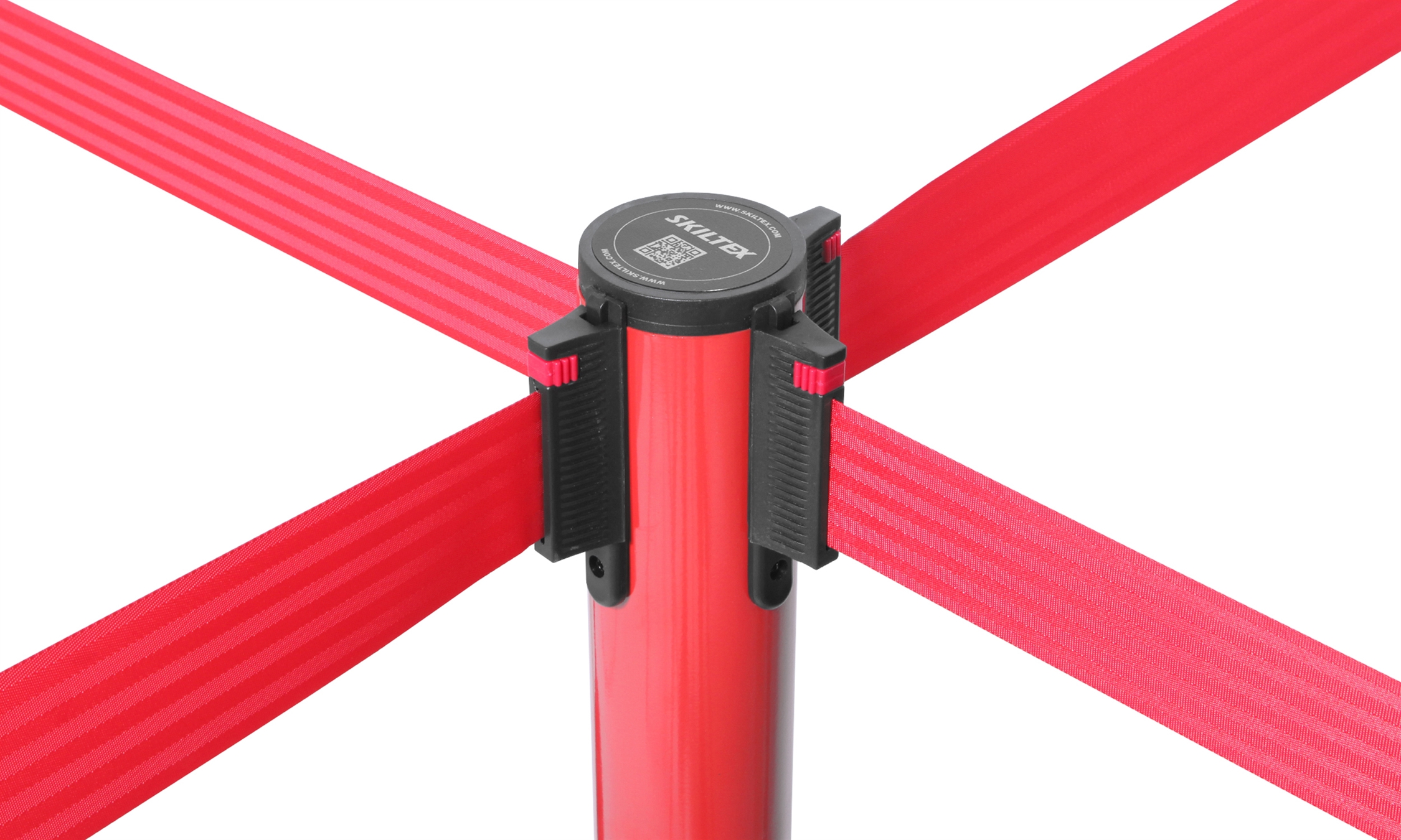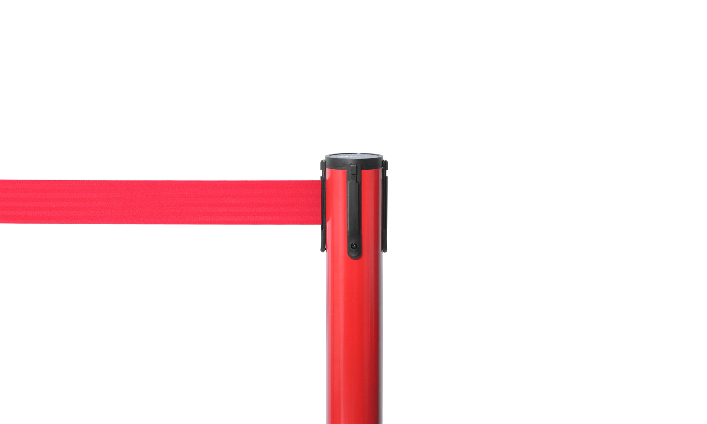 Rød SafetyMaster avsperringsstolpe med rødt bånd