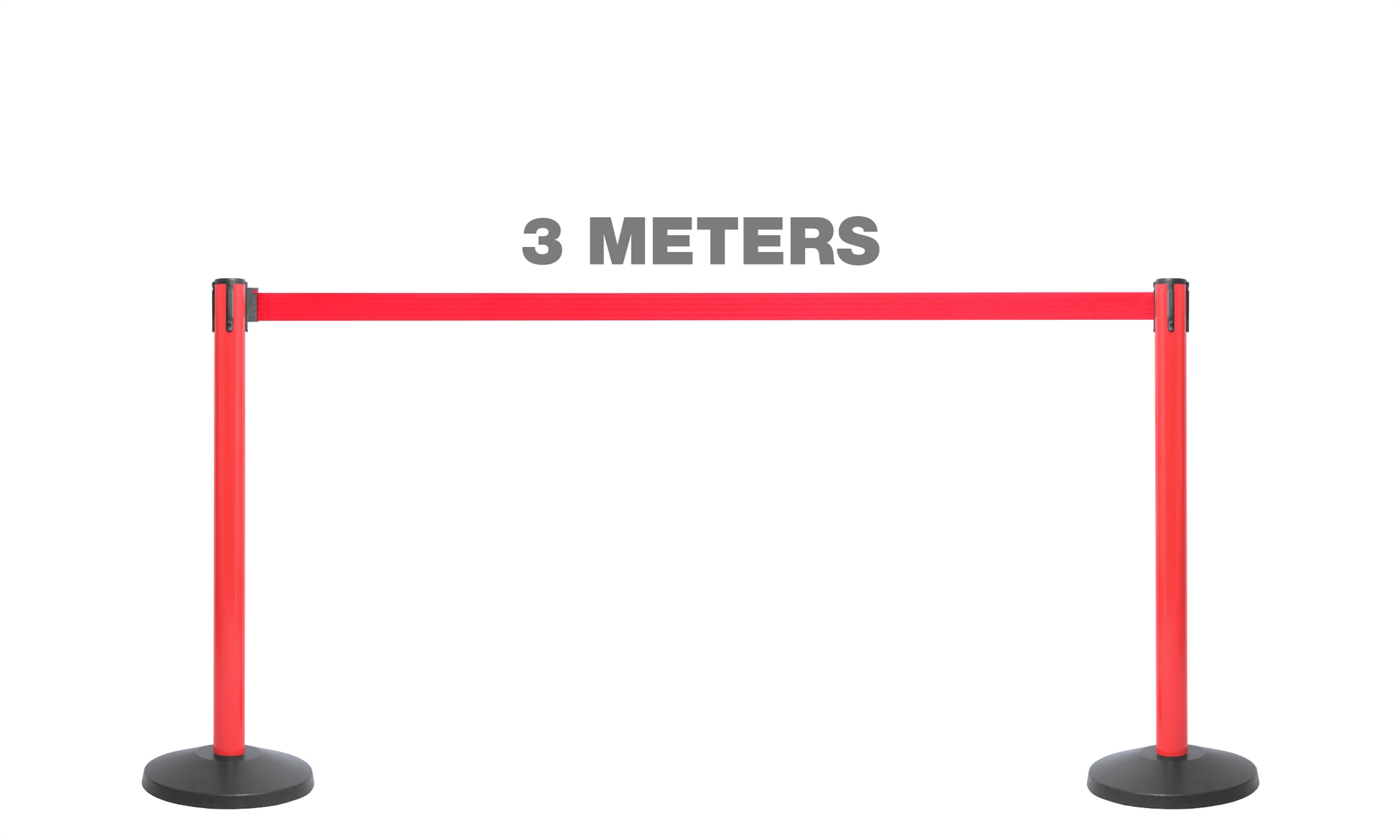 De ekstrem lange 3 meter opptrekkelige bånd er en del lengere enn industristandarden, som er 2,3 meter. Dette betyr at med våres stolper holder det med at kjøpe 35% færre stolper enn normalt.
