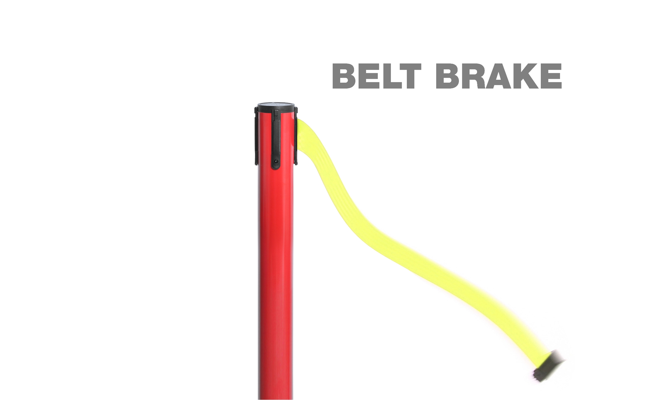 Disse kø-ledere har et avansert sikkerhetsbremsesystem – Dette betyr at hvis båndet blir tapt, så faller det ned på gulvet og trekker sig langsomt tilbake inn i spolen.
