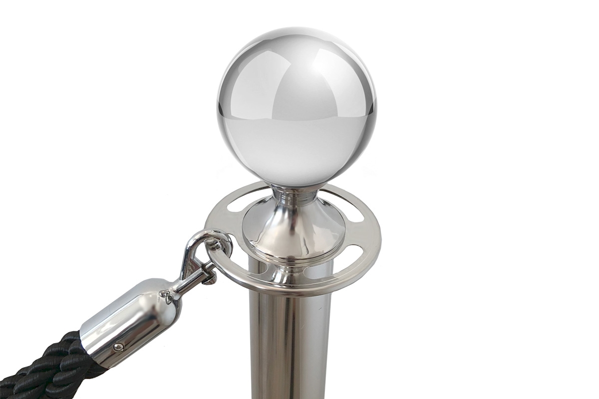 Elegant og stilren Sølv-avsperringsstolpe med kule-topp.