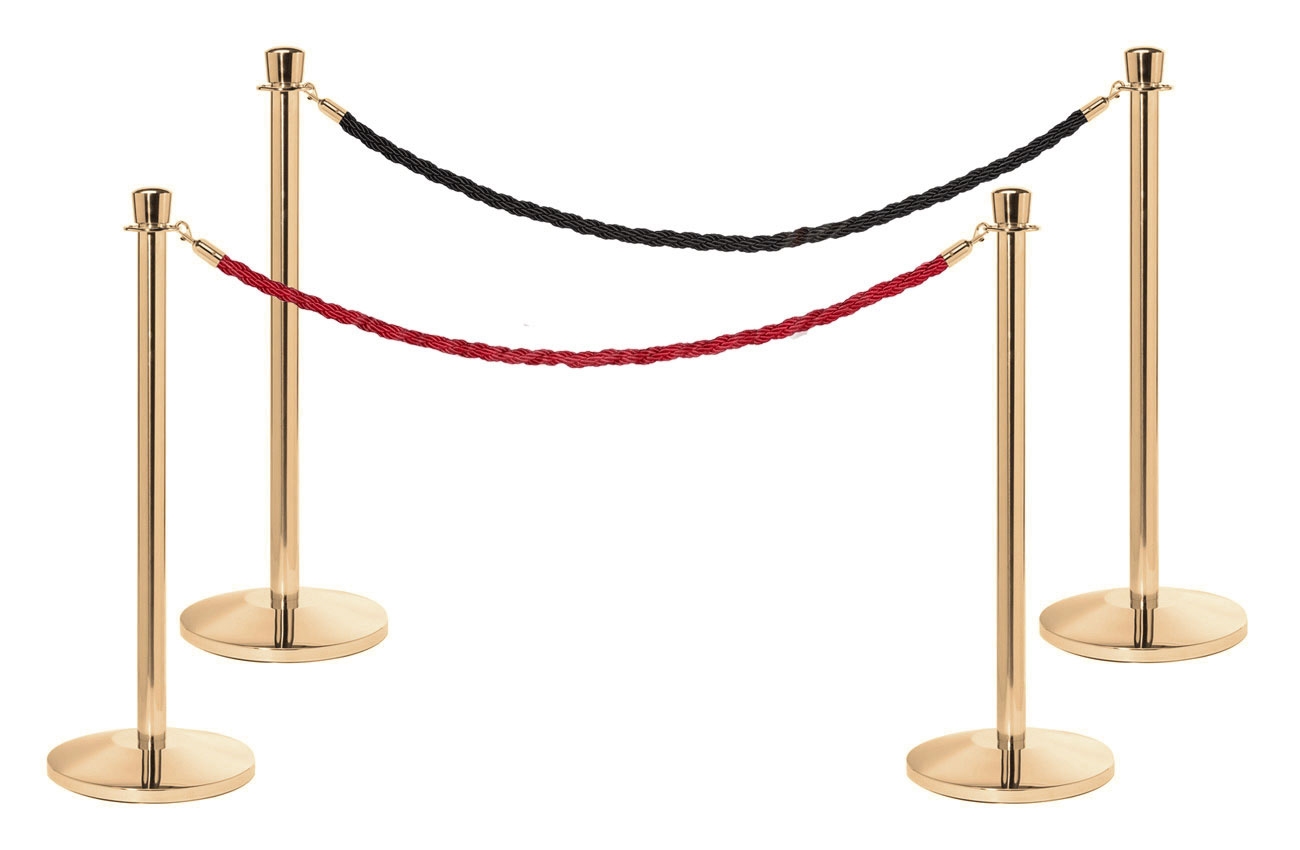 RopePro avsperringsstolper i gull / polert messing farge med krone-topp.