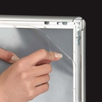 Alle våre sikkerhetsrammer er utstyrt med en hvit PS bakplate og en spesiell antirefleks frontplate, som beskytter plakaten din og sørger for at budskapet alltid kan sees.