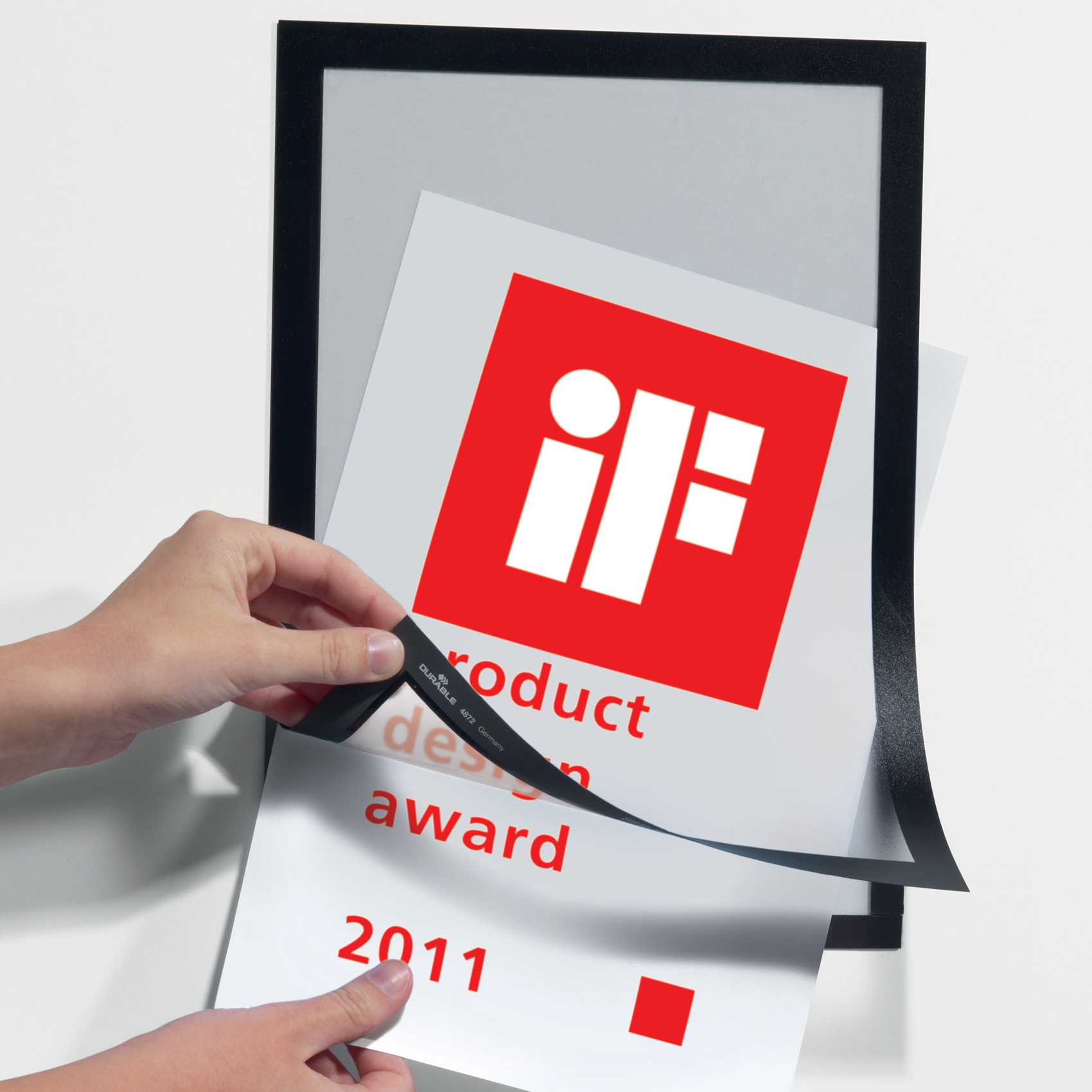 Med duraframes er det raskt å installere og erstatte innholdet takket være den åpningsbare magnetrammen.