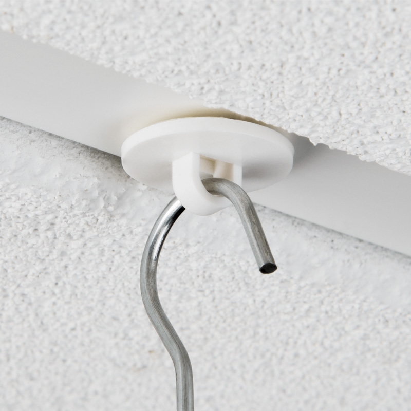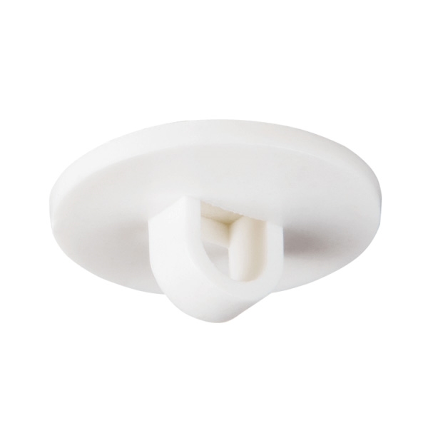 Rund selvklebende takkrok med lukket plastøye, som er lett å feste på rene og tørre overflater.