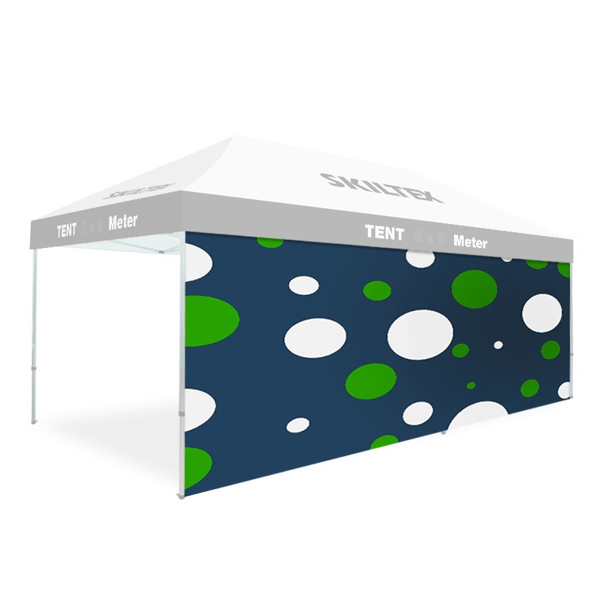 Dobbelsidet sidevegg med fullfarget trykk med ditt eget design, som passer til SKILTEX 3x6 meter reklametelt.