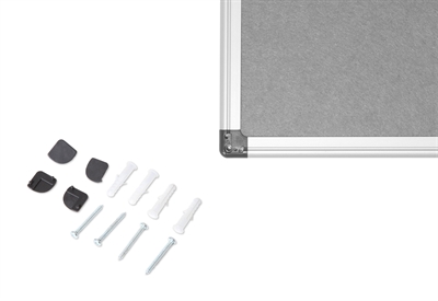SKILTEX oppslagstavlen er utstyrt med sterke, grå ABS-hjørner som sikrer stabilitet og holdbarhet. Den leveres også komplett med monteringsskruer og plugger for enkel veggmontering, slik at du kan få den opp på veggen raskt og enkelt.