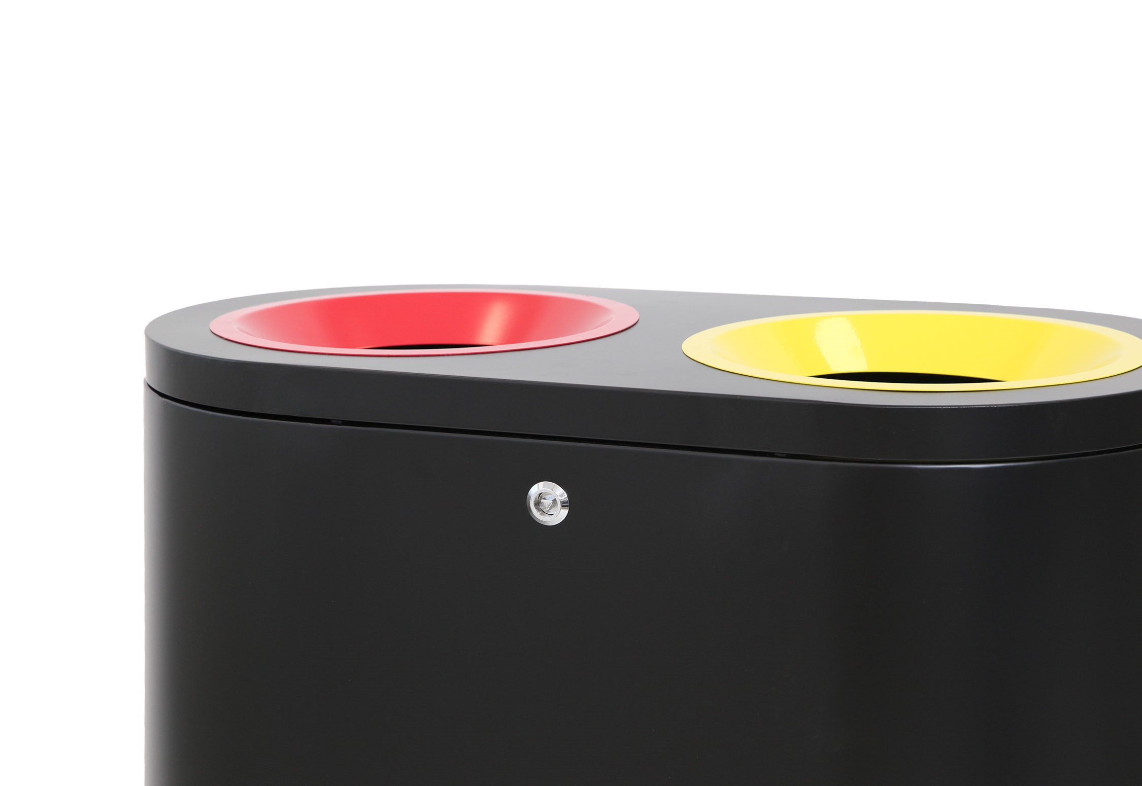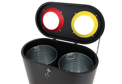 Beholderen er utstyrt med to 50 liters interne beholdere i galvanisert stål, som hver kan tildeles en spesifikk type avfall. Hver beholder har en passende kapasitet i liter for å imøtekomme daglige behov og gjøre dem enkle å tømme.En nøkkel følger med for å sikre sikker åpning og lukking av beholderen, noe som hindrer uønsket tilgang og opprettholder hygiene.