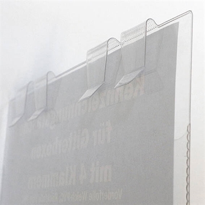 Den er spesielt designet med rivbeskyttelse for å sikre at dokumentene dine forblir intakte og beskyttet. Forsiden av skiltlommen er laget av myk PVC-folie som er gjennomsiktig og holder skiltene synlige og lett lesbare. Baksiden er laget av stiv PVC-folie som gir ekstra stabilitet og støtte.