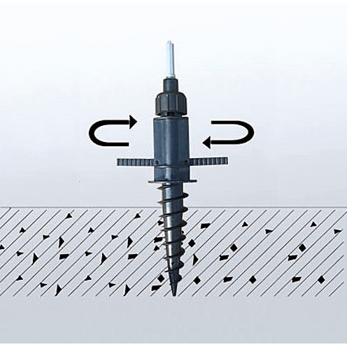 Skruespyddet er perfekt for bruk i myk jord, sand eller til og med snø. Står fast og stabilt i bakken.