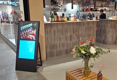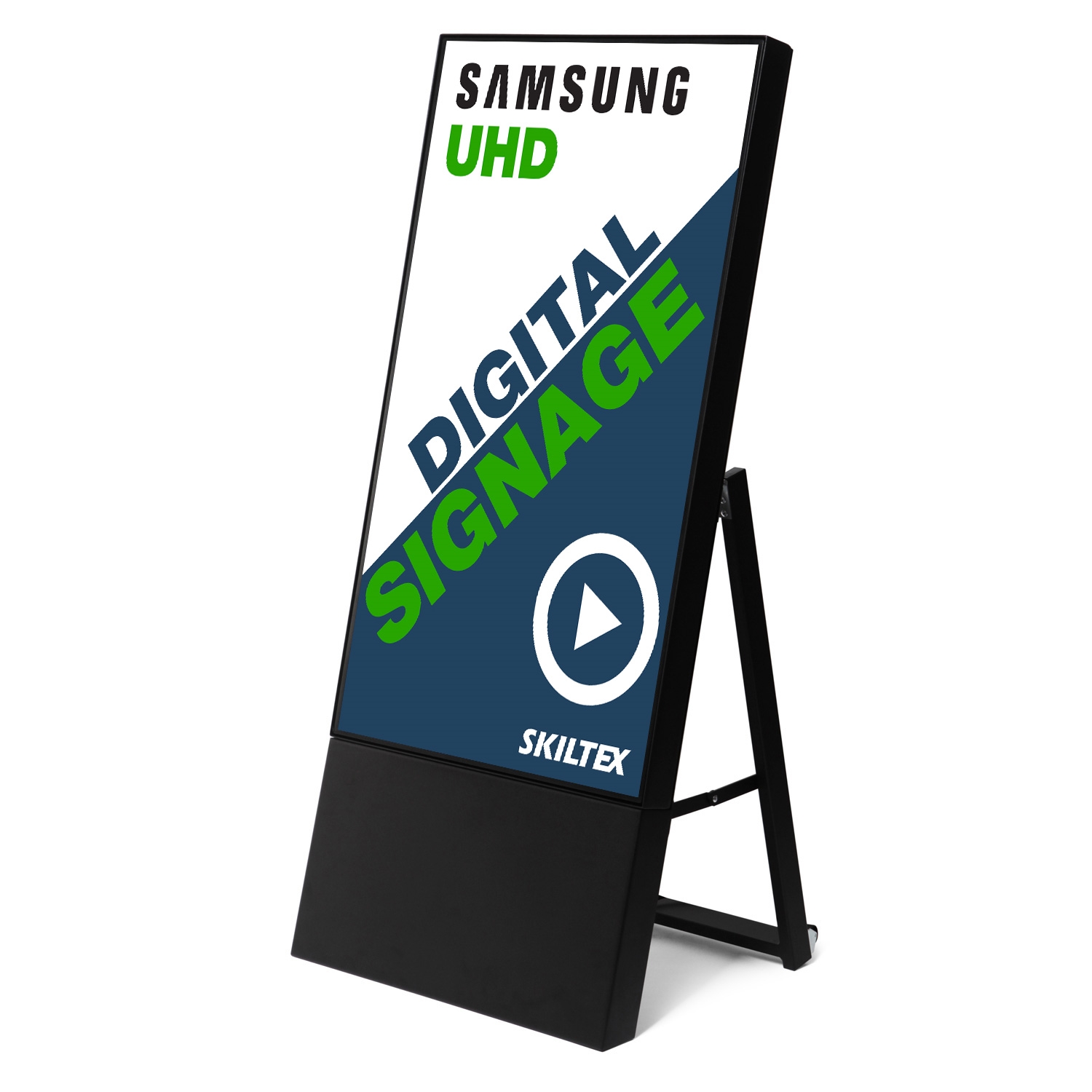 Dette digitale A-skiltet leveres klar til bruk med en profesjonell 43" Samsung 4k UHD-skjerm og MagicINFO™-spiller.