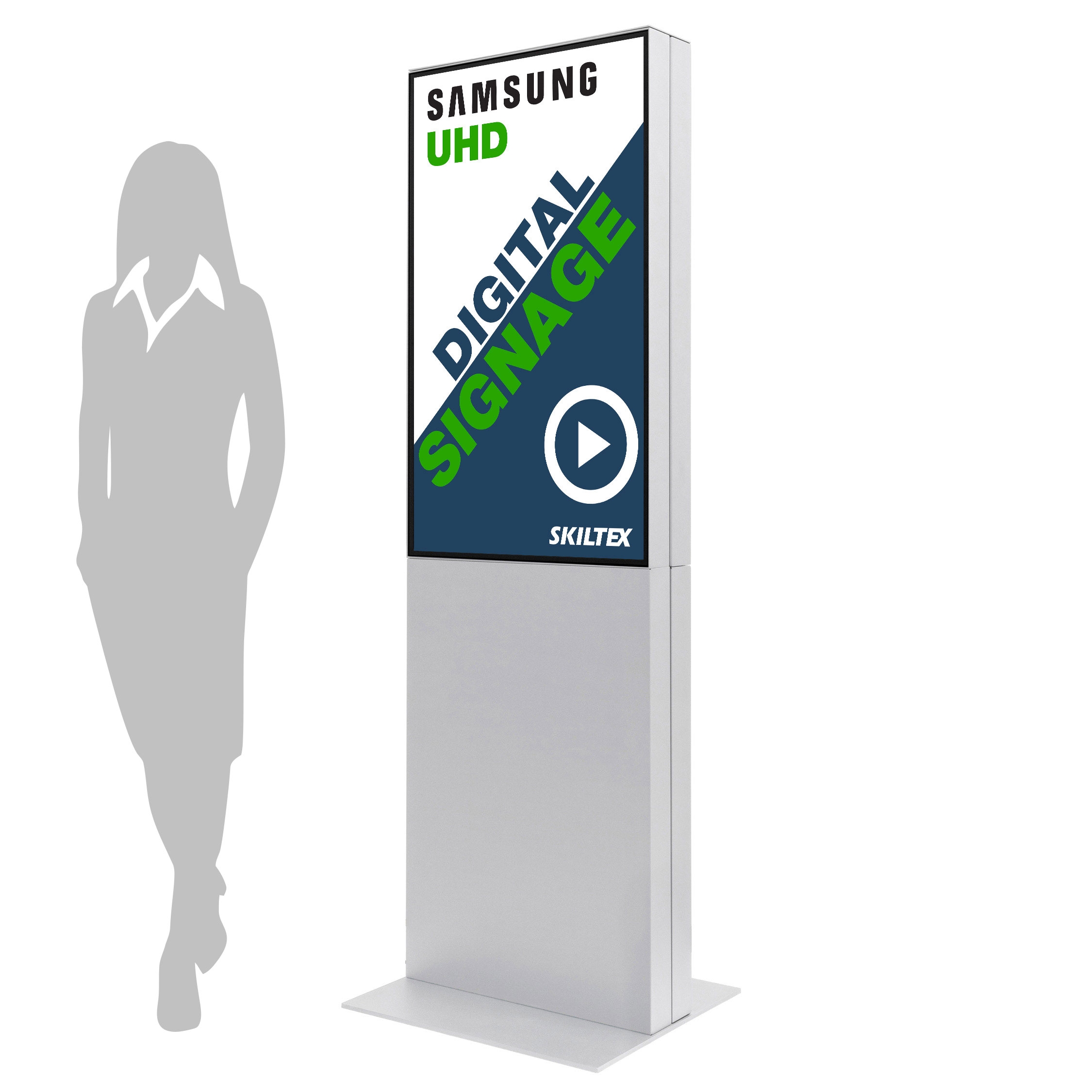 Få dobbelt så mye oppmerksomhet med vår dobbeltsidige digitale totem med en førsteklasses, rammeløs design, som leveres klar til bruk med to profesjonelle Samsung 4K UHD 43" Display-skjermer og MagicINFO™-spiller.
