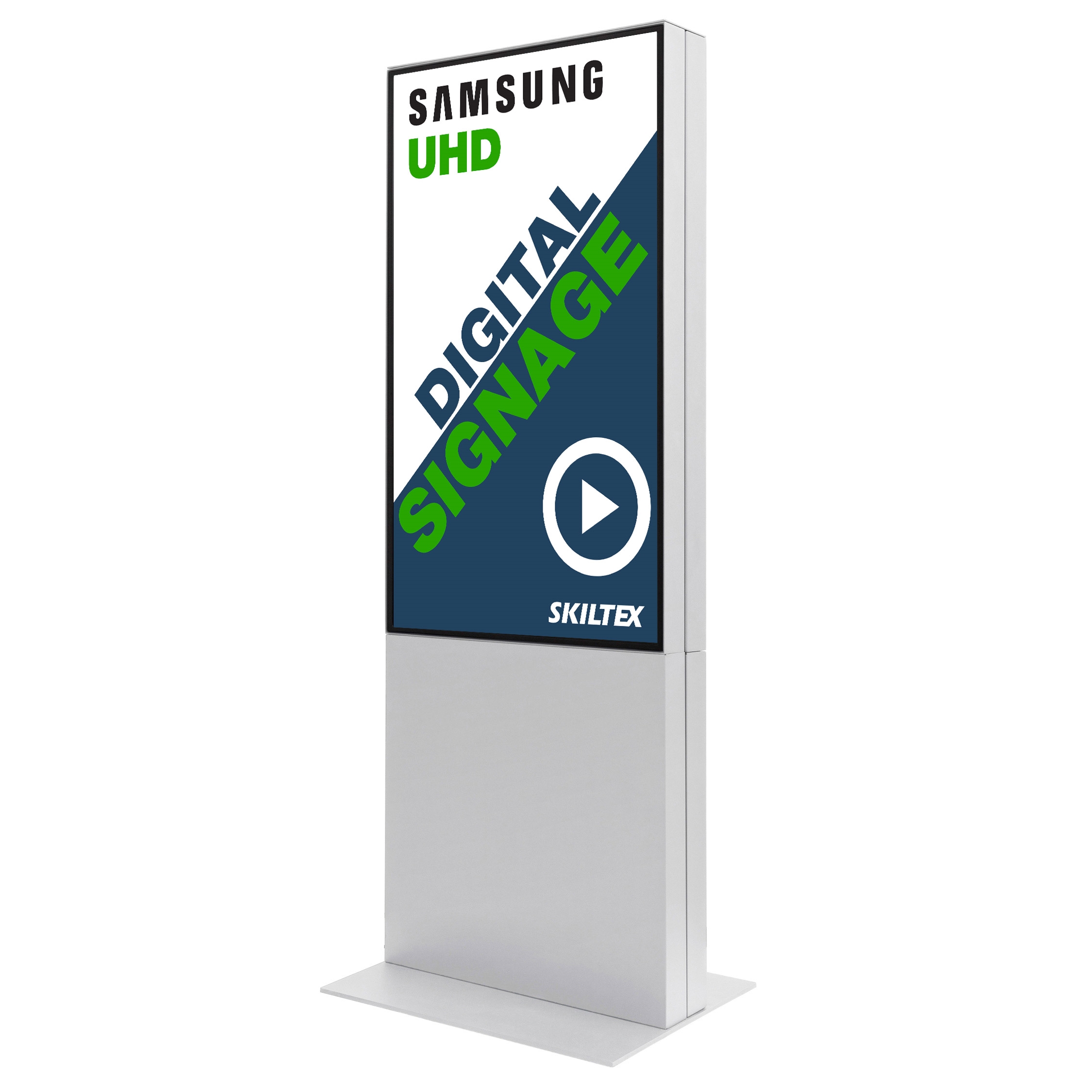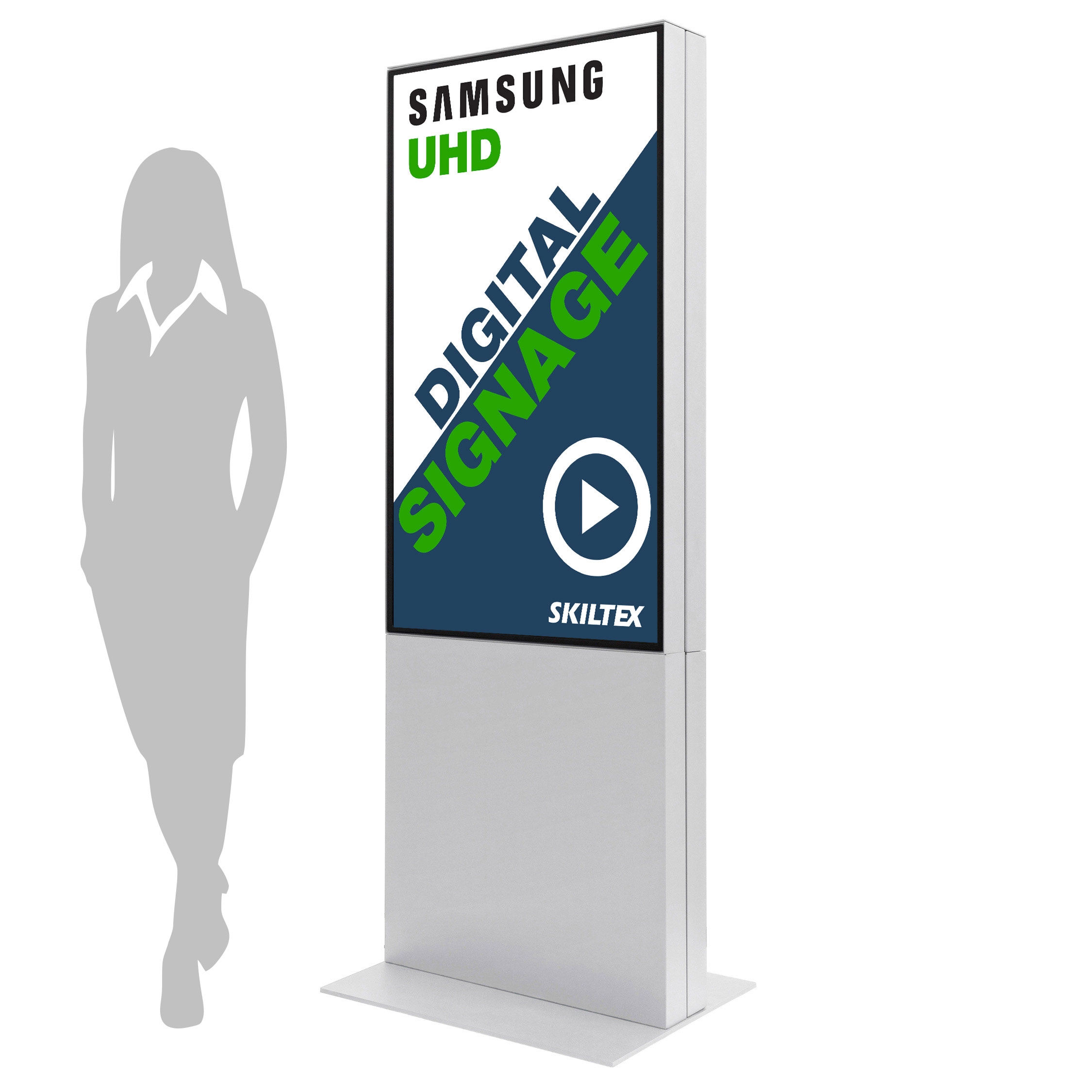 Få dobbelt så mye oppmerksomhet med vår dobbeltsidige digitale totem med en førsteklasses, rammeløs design, som leveres klar til bruk med to profesjonelle Samsung 4K UHD Display-skjermer og MagicINFO™-spiller.