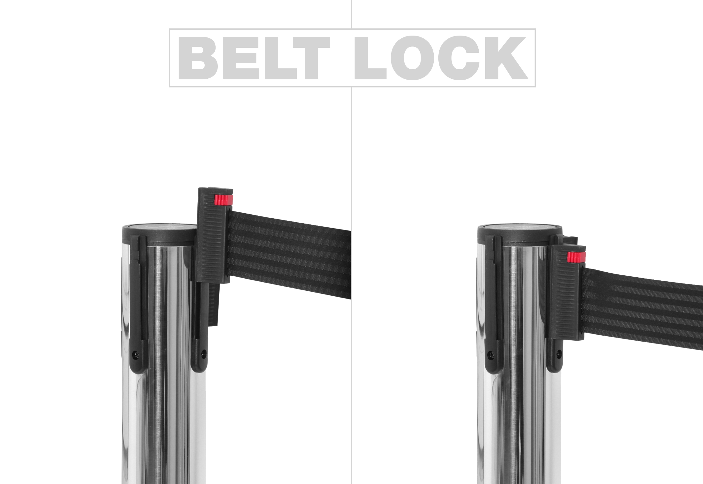 Båndene er utstyrt med en lås, som sikrer, at de sitter godt og fast på andre stolper. Skiltex avsperringsstolper har en universell bånd-lås, som passer til andre populære avsperringstolpe-brands – med garanti.