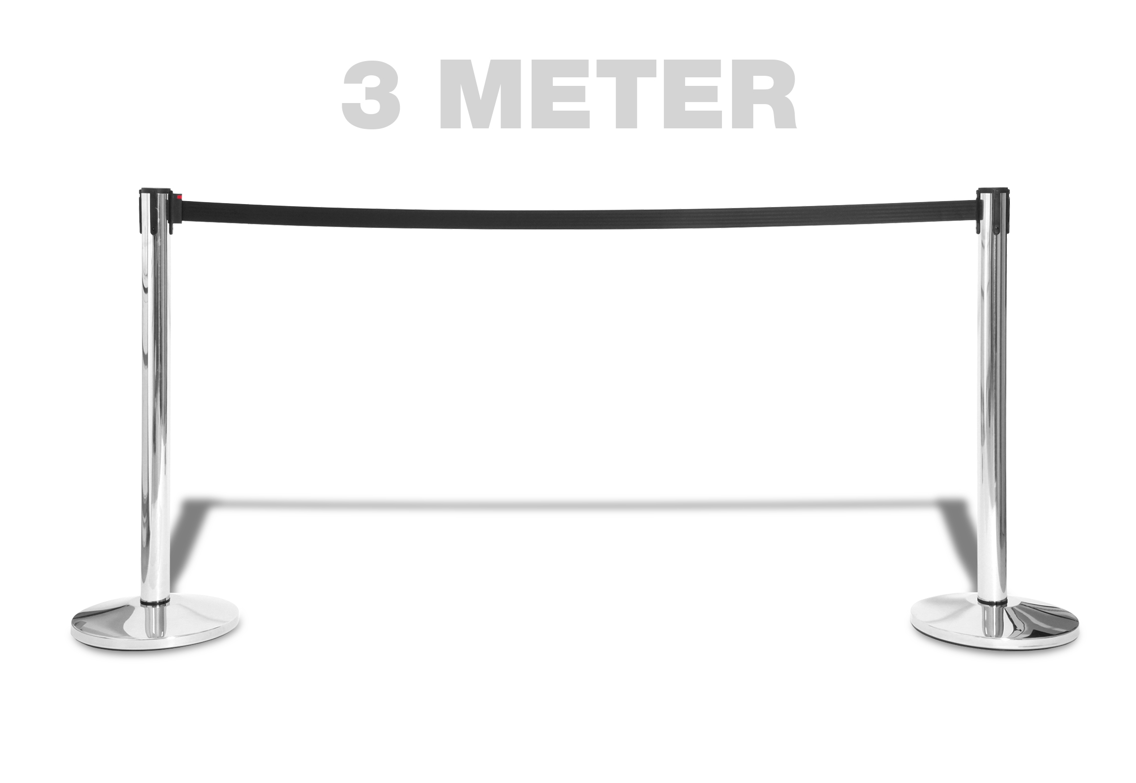 De ekstremt lange 3 meter, opptrekkelige bånd er en del lengere enn industristandarden, som er 2,3 meter. Dette betyr at med våres stolper holder det med at kjøpe 30% færre stolper enn normalt.