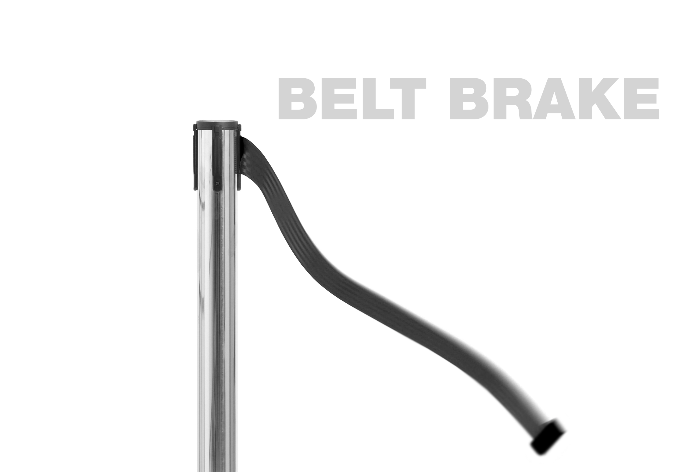Disse kø-ledere har et avansert sikkerhetsbremsesystem – Dette betyr at hvis båndet blir tapt, så faller det ned på gulvet og trekker seg langsomt tilbake inn i spolen.