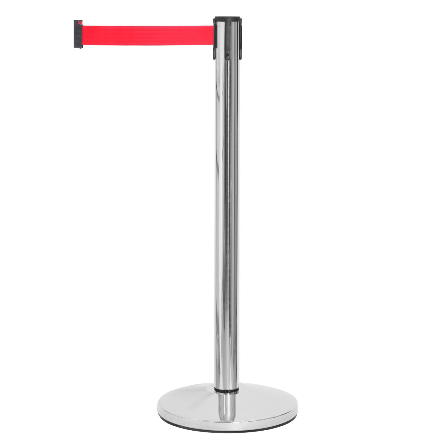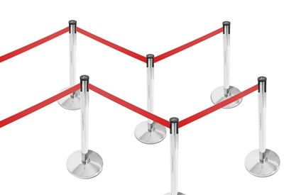 Sølv avsperringsstolpe med rødt bånd