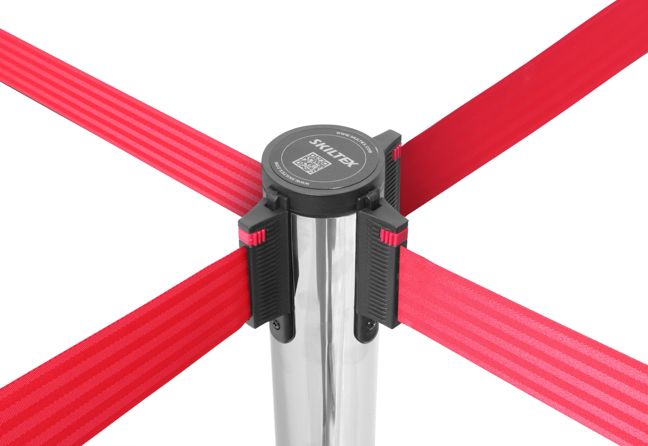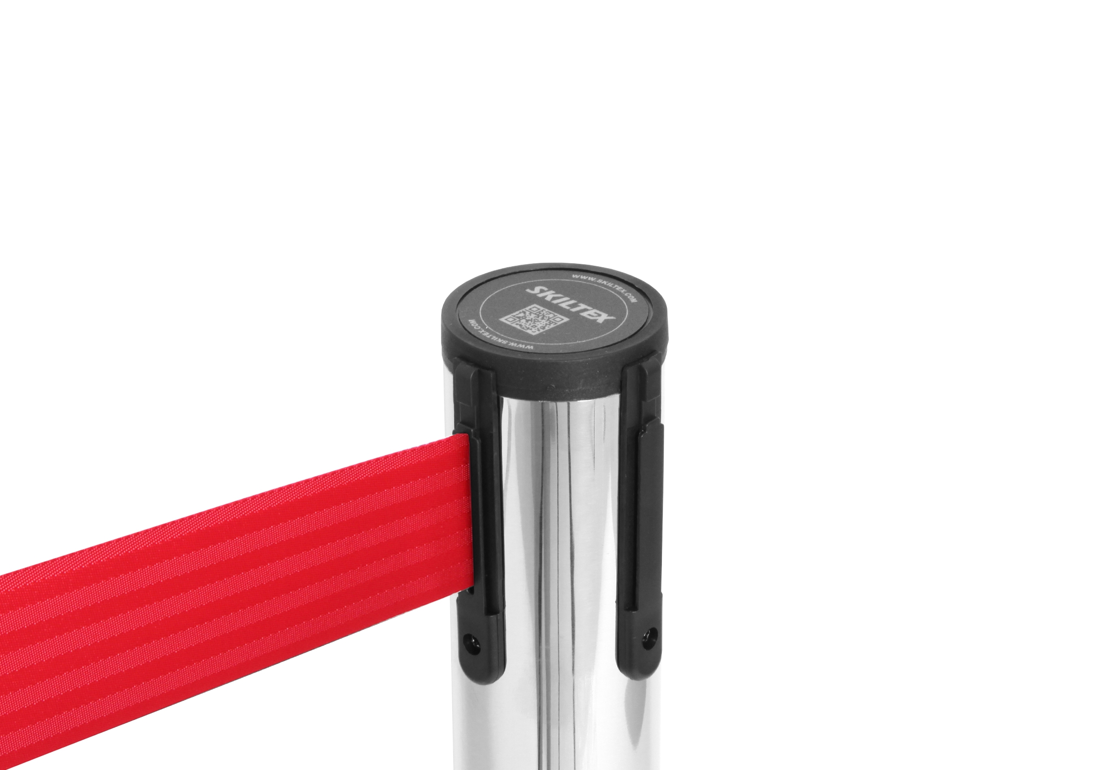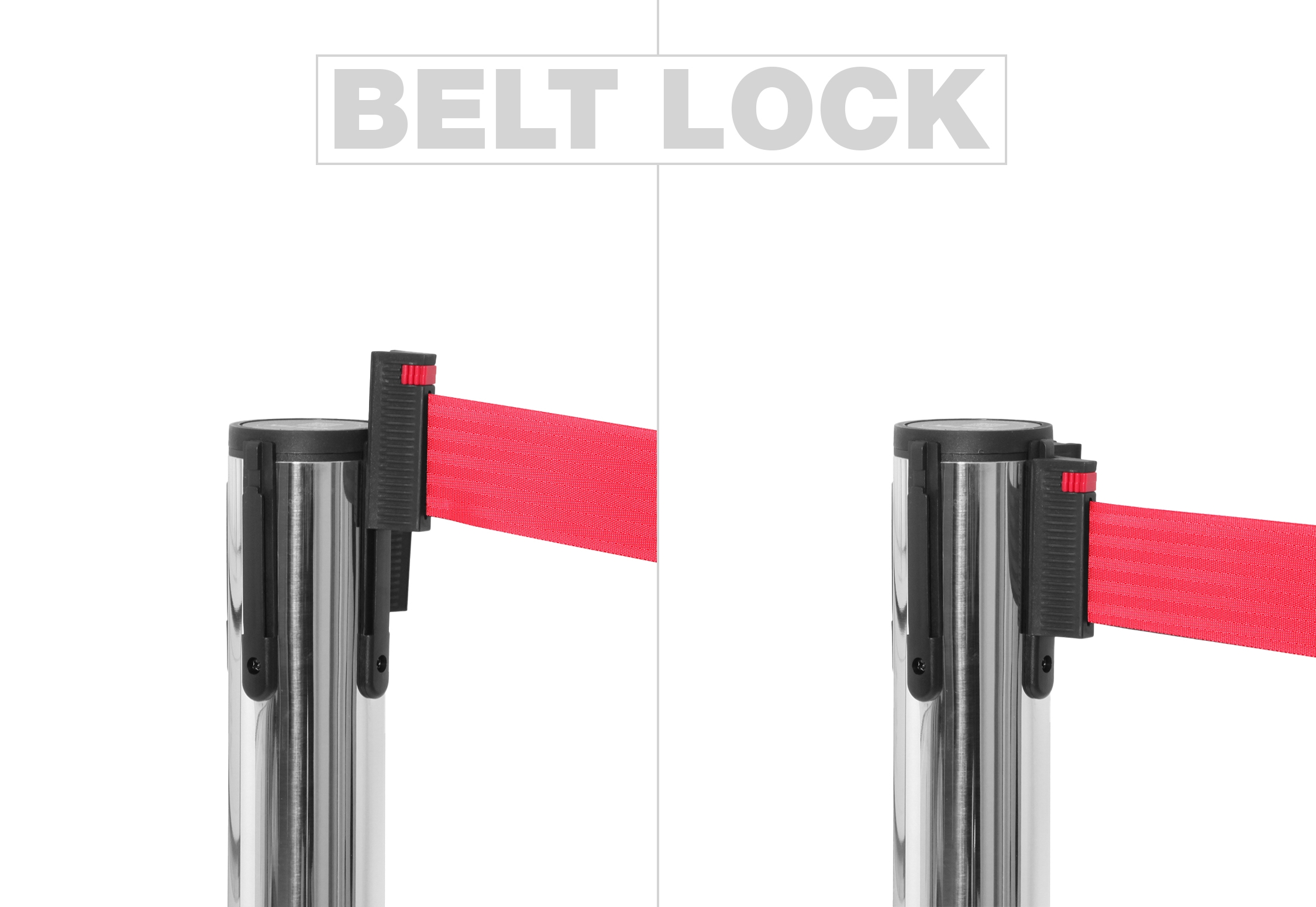 Båndene er utstyrt med en lås, som sikrer, at de sitter godt og fast på andre stolper. Skiltex avsperringsstolper har en universell bånd-lås, som passer til andre populære avsperringstolpe-brands – med garanti.