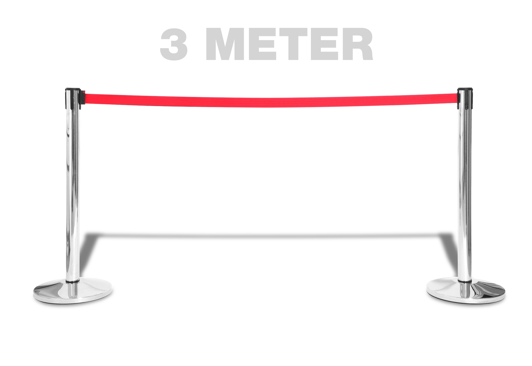 De ekstremt lange 3 meter, opptrekkelige bånd er en del lengere enn industristandarden, som er 2,3 meter. Dette betyr at med våres stolper holder det med at kjøpe 30% færre stolper enn normalt.