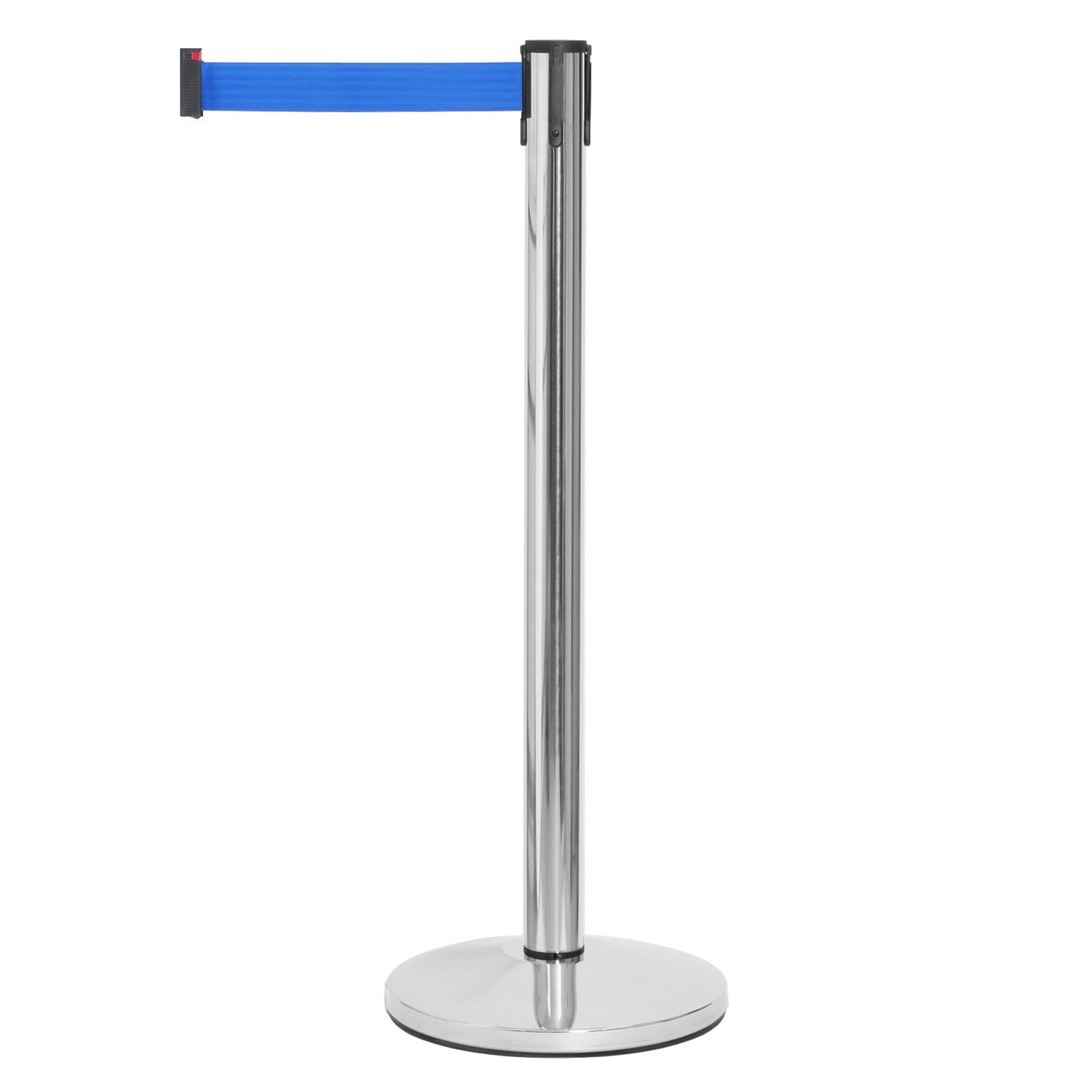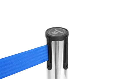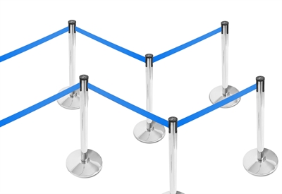 Sølv avsperringsstolpe med blåt bånd