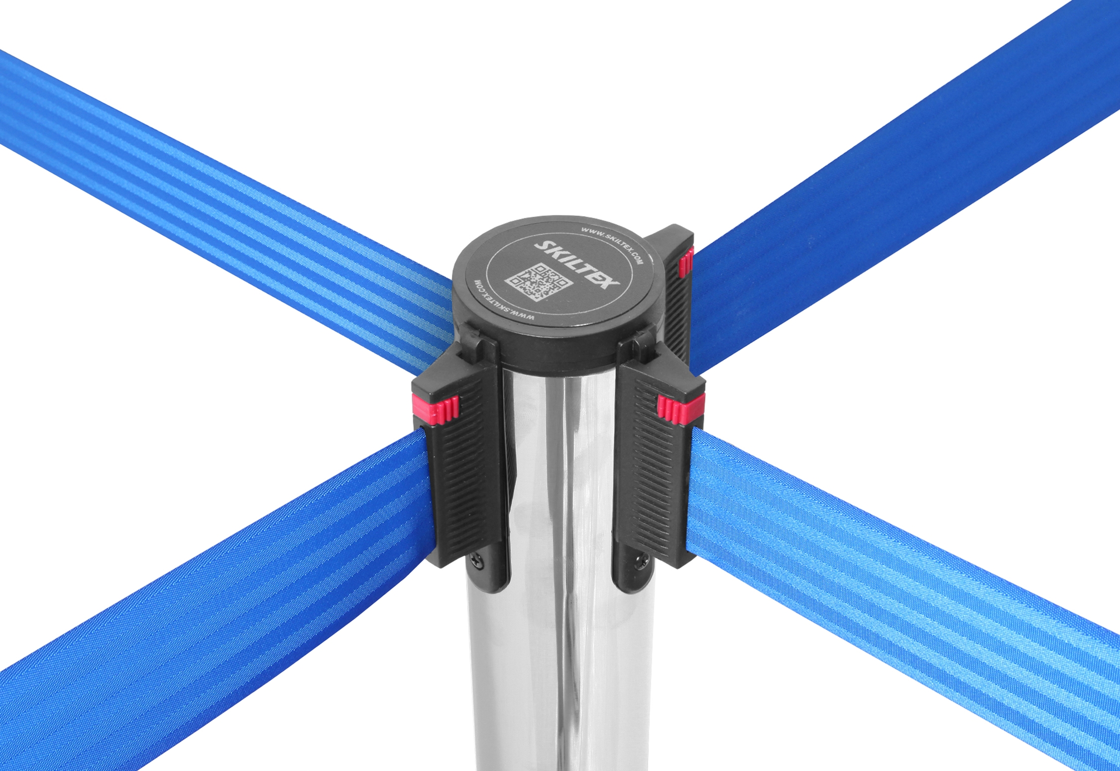Båndene er utstyrt med en lås, som sikrer, at de sitter godt og fast på andre stolper. Skiltex avsperringsstolper har en universell bånd-lås, som passer til andre populære avsperringstolpe-brands – med garanti.